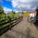 ogród z częścią zieloną, warzywniakiem i tunelem foliowym.