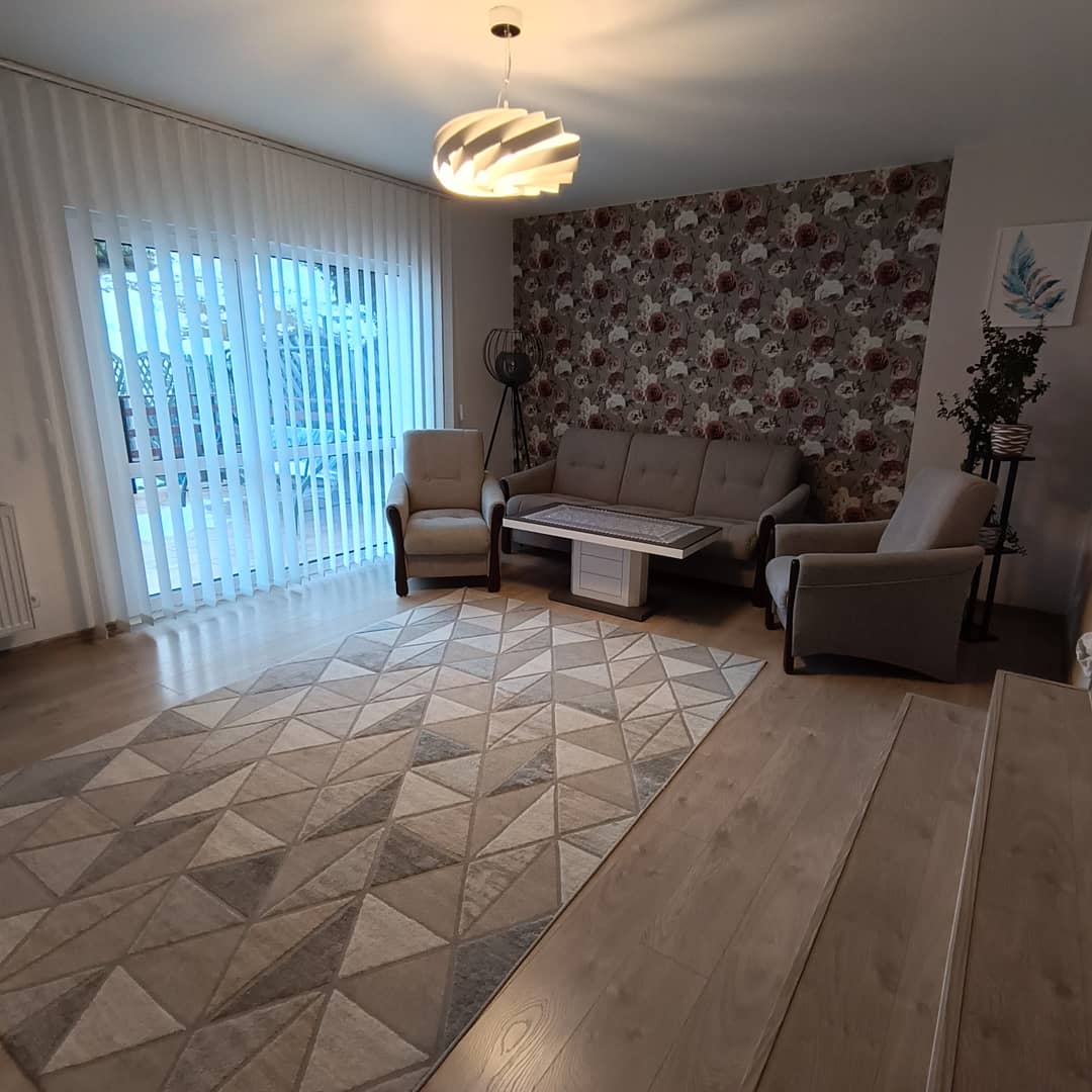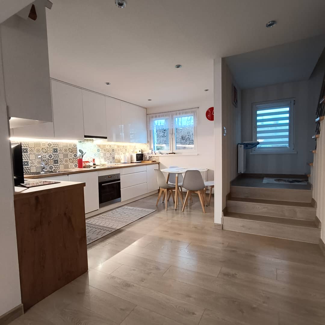 Komfortowo wykończony dom w zabudowie bliźniaczej, w Kowarach. Posadowiony na działce 523 m2 o powierzchni całkowitej około 190 m2 i użytkowej 153 m2. W przyziemiu budynku znajduje się pralnia, kotłownia, warsztat plus 2 pom. gospodarcze. Parter obejmuje przedpokój, łazienkę, wyposażoną i umeblowaną kuchnie, połączona z jadalnią i poniżej salonem z wyjściem na drewniany taras, połączony z ogrodem. Na piętro prowadzą nowe, podświetlane schody gdzie znajduje się korytarz, 2 pokoje, łazienka, garderoba oraz taras około 50 m2 z pięknymi widokami na panoramę miasta i pobliskie wzgórza. Powyżej otwarty, przestronny i słoneczny salon oraz sypialnia z mniejszą garderobą i wyjściem na balkon. Budowany pod koniec lat 70 z superexu, ocieplony suprema, dach pokryty blachą. W 2019 roku dom przeszedł kapitalny remont, wymieniono wszystkie instalacje, położone nowe tynki i gładzie, podłogi na całości pokryte panelami, wymienione okna na pcv 3 szybowe, nowe drzwi wewnętrzne i zewnętrzne. Ogrzewanie piecem gazowym, bardzo ekonomicznym firmy Vaillant z zasobnikiem na wodę. Dodatkowo zamontowane panele fotowoltaiczne. W bryle budynku garaż z bramą na pilota, przed domem położona kostka, teren ogrodzony metalowym płotem. Atrakcyjna lokalizacja z uwagi na bliskość centrum miasta a zarazem w otoczeniu natury i zieleni. Dom bardzo wygodny i komfortowy, urządzony gustownie, do zamieszkania bez dodatkowego wkładu finansowego. Cena 880 000 zł podlega negocjacji. Oferta dostępna tylko w Naszym biurze, serdecznie polecam i zapraszam na prezentację Nieruchomości Rychlewski