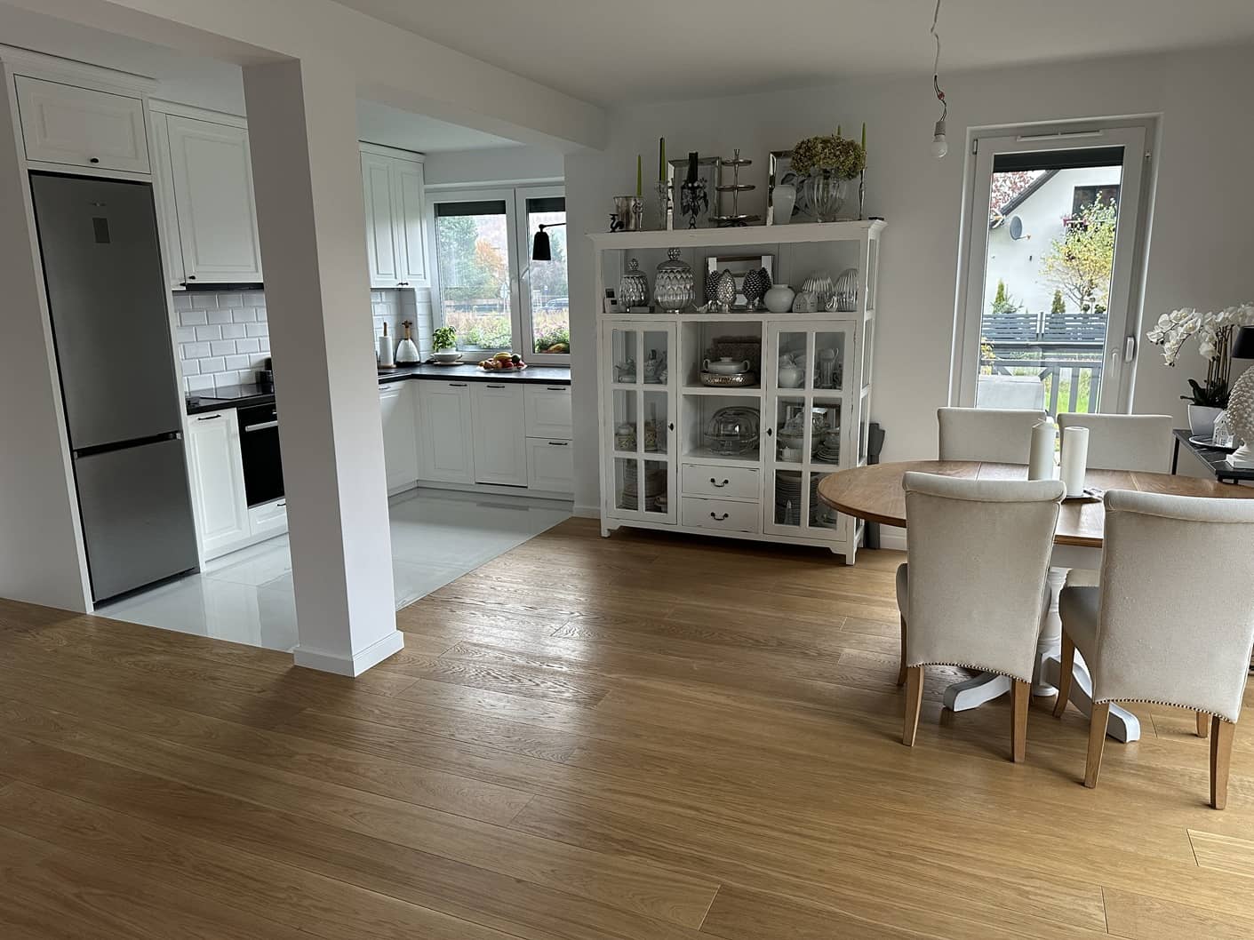 - na podłogach w całym domu deska drewniana dębowa