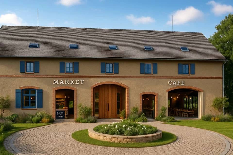 Trzy zdjęcia prezentuja wizualizacje symulującą REMONT DLA SIEDLISKA EKOLOGICZNEGO- dom własciciela , DRUGI budynek z łukiem z pokojami goscinnymi i urocza herbaciarnia jako miejscem rekreacyjnym w dawnym łuku przejazdu na pole ,oraz bufdynek stodoła jako marketem ekologicznym ze strefa zdrowej żywności i częscią gastronomiczną . /ekologiczna restauracj i pijalnia ziół/ to oczywiscie wizualizacja ,ale stan obecny pozwala na jej realizację przy dofinansowaniu i motywacji ,aby spełnic marzenie o ekologicznym folwarku blisko miasta Jelenniej Góry. Targ ekologiczny woparciu o produkty wytwarzane przez miejscowych rolników ,ze wzgeldu na bliskość sypialni miasta Jeleniej Góry ,ma naprawdę wielki potencjał .