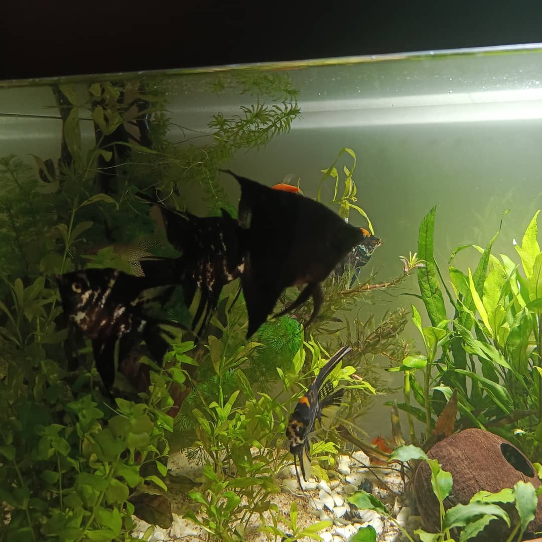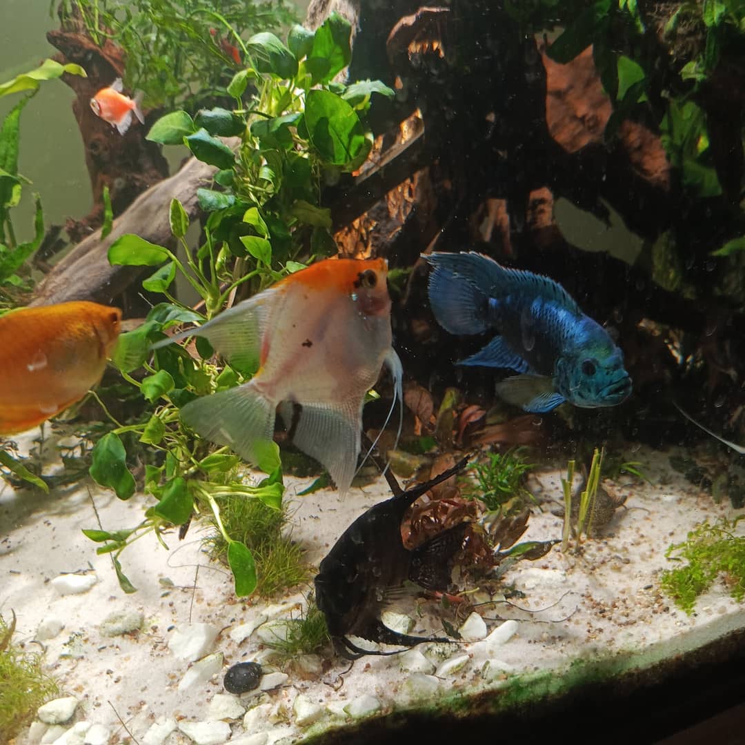 Sprzedam 9 skalarów, 4 górami, 3 pielęgnice. Ryby mają rok. Za wszystko 400 zł.
