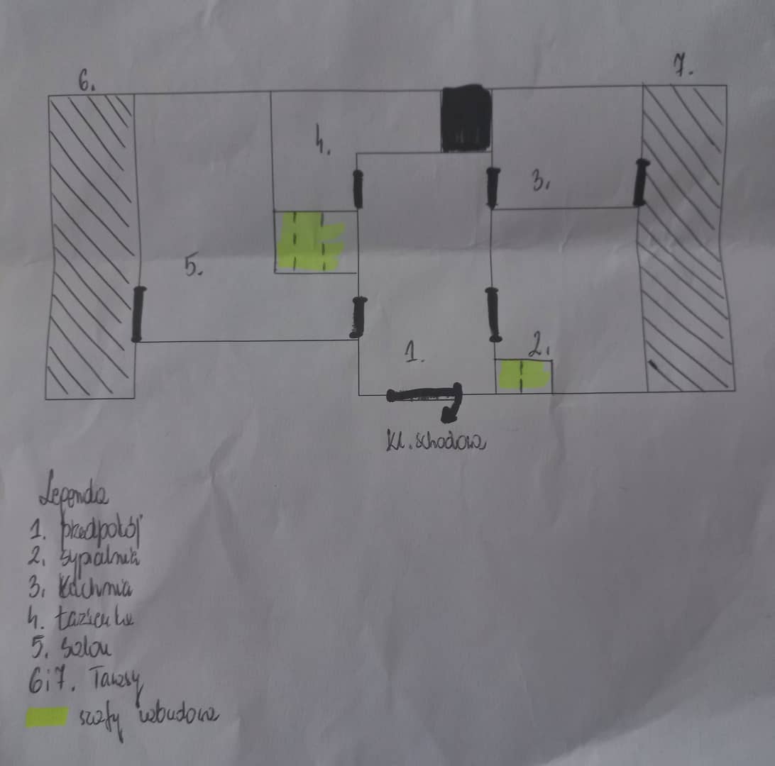 Składa się z salonu z wyjsciem na taras, kuchni z wyjściem na taras, łazienki z WC, przedpokoju i sypialni.