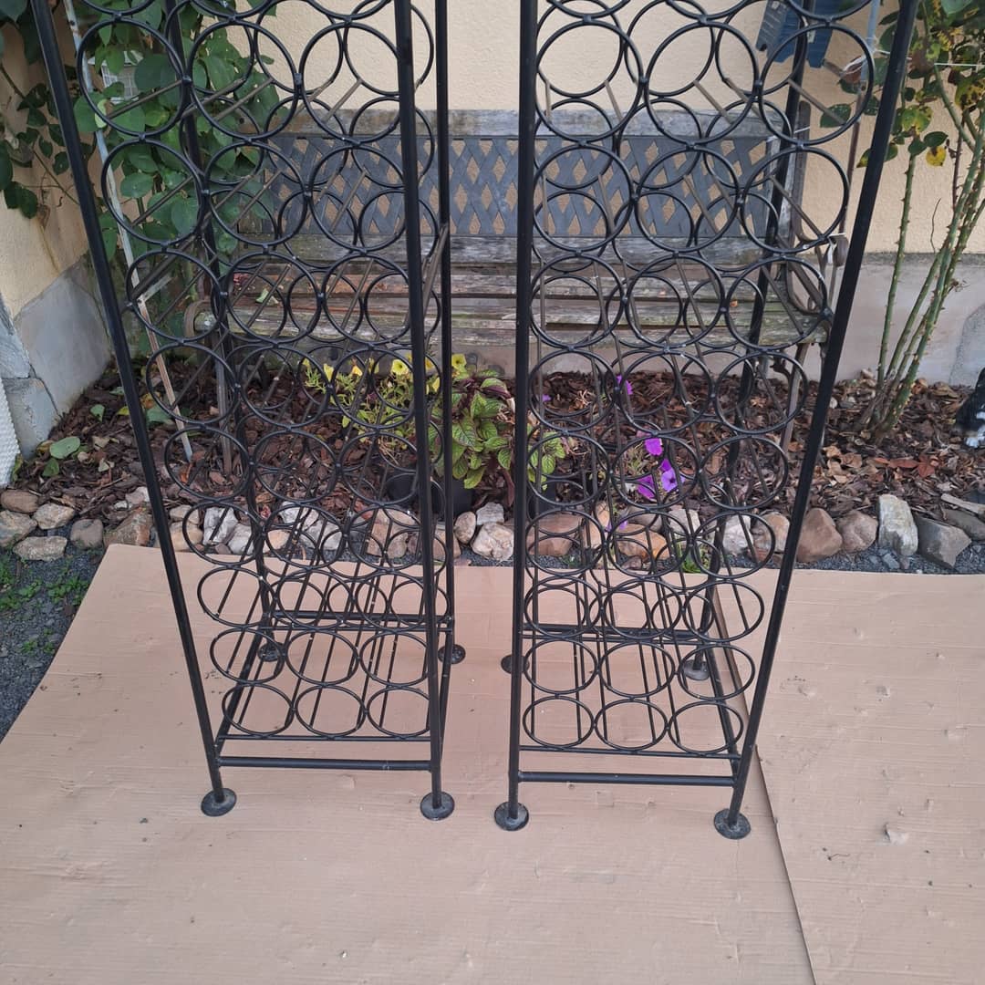 Stojaki metalowe na butelki, jeden pomieści 39 sztuk. Wymiary 32/33/164 cm, cena za jeden 200 zł. Możliwy transport lub odbiór osobisty.