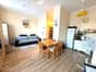 -przestronnego salonu z aneksem kuchennym oraz wyjściem na balkon,