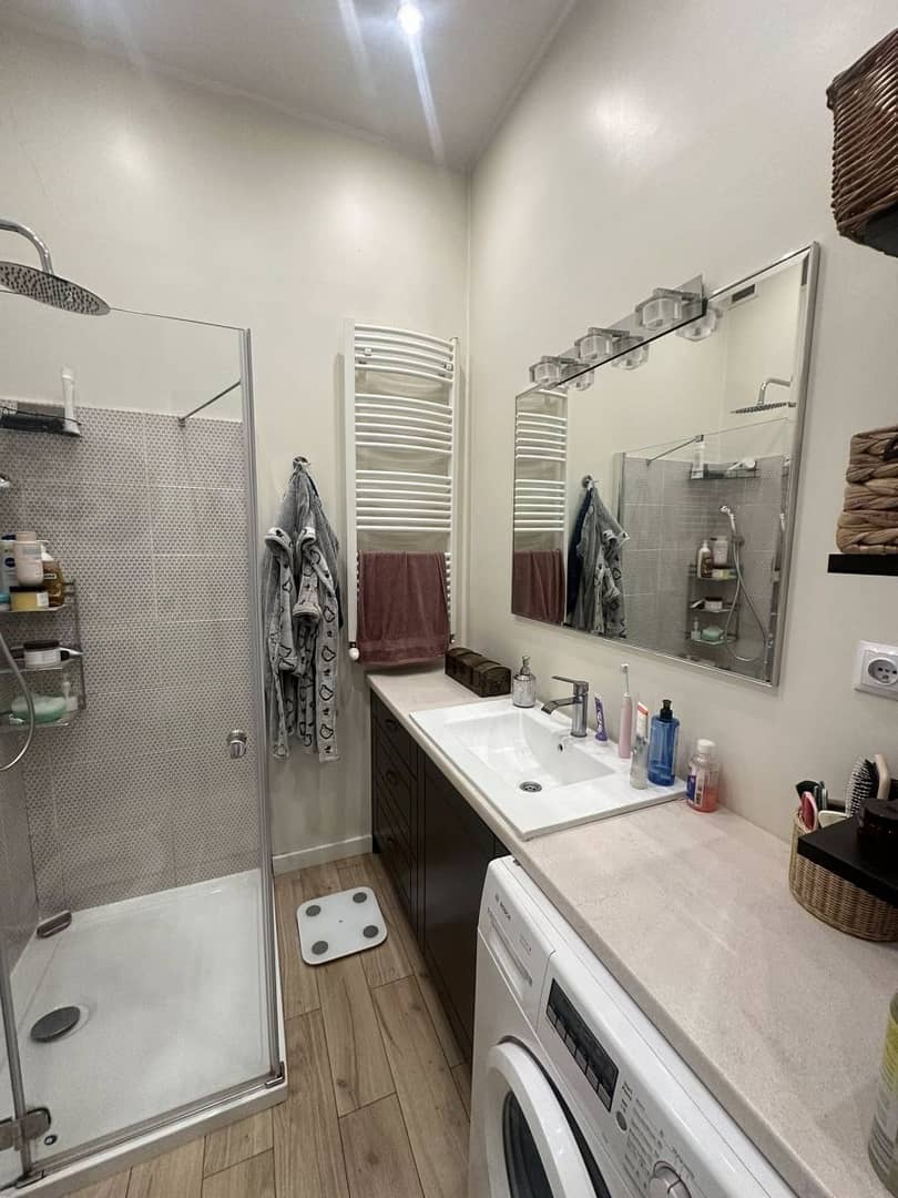 Salon + sypialnia, oddzielna widna kuchnia (wyposażona), łazienka z prysznicem, korytarz i przedsionek. Przynależy piwnica.