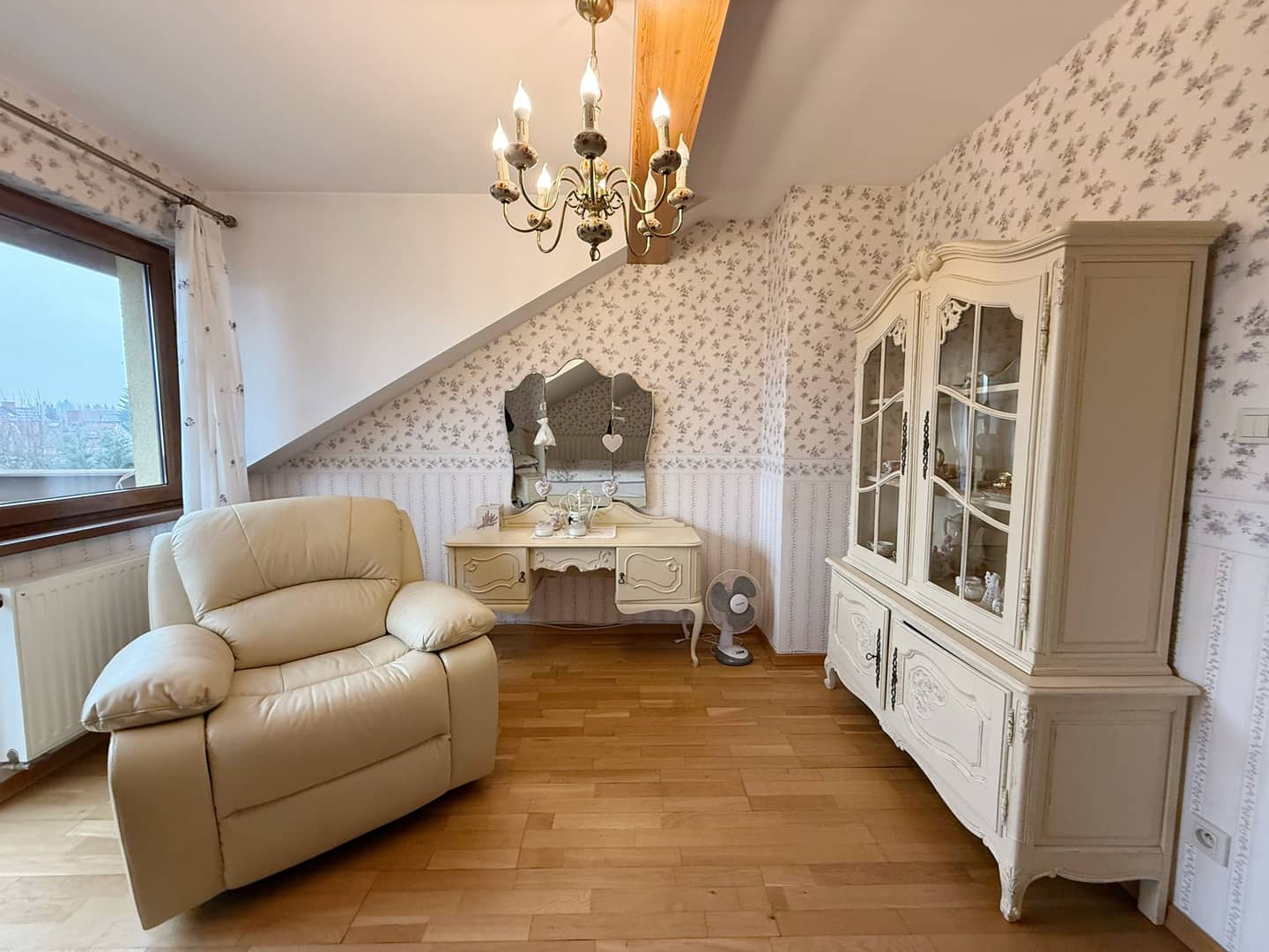 Komfortowo wykończony dom w zabudowie bliźniaczej, w Kowarach. Posadowiony na działce 523 m2 o powierzchni całkowitej około 190 m2 i użytkowej 153 m2. W przyziemiu budynku znajduje się pralnia,
