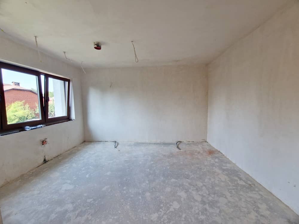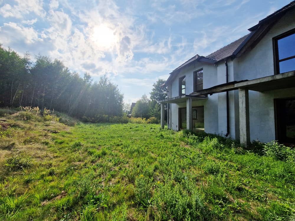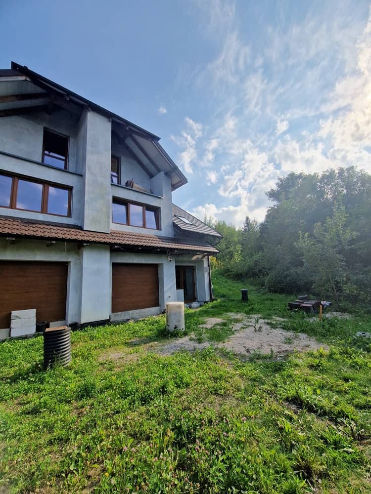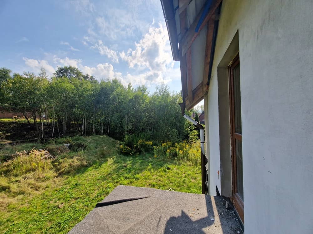 Okna PCV, dach pokryty dachówką karpiówką. Budynek wybudowany z Porotermu, Silki, Ytongu, stropy Terriva.