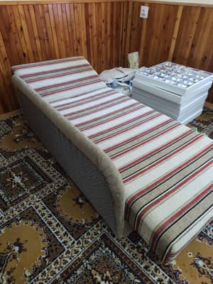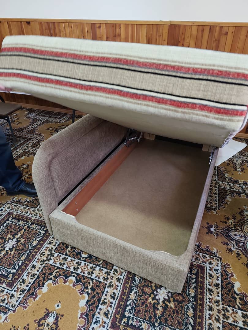 Na sprzedaż komfortowa leżanka tapicerowana, doskonała do wypoczynku w ciągu dnia lub jako dodatkowe miejsce do spania. Mebel posiada stabilną konstrukcję oraz miękkie, sprężyste wypełnienie zapewniające wygodę użytkowania.
