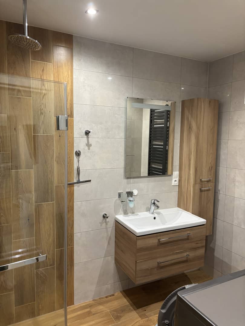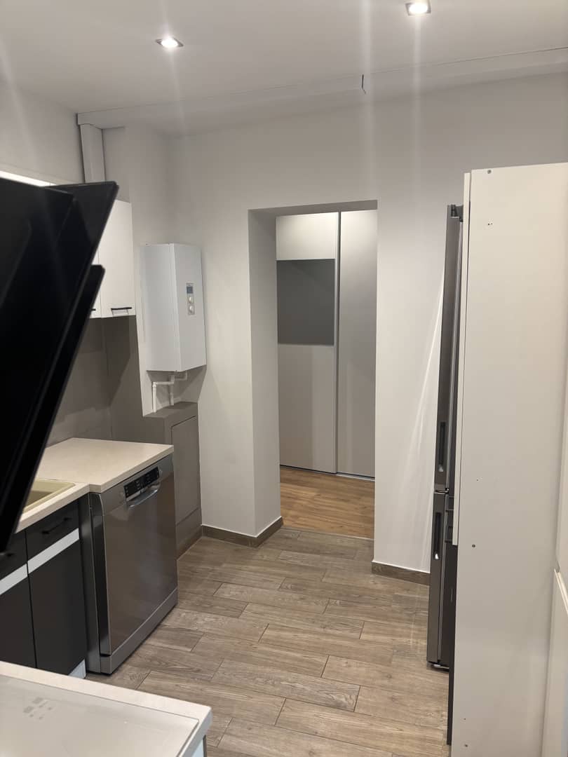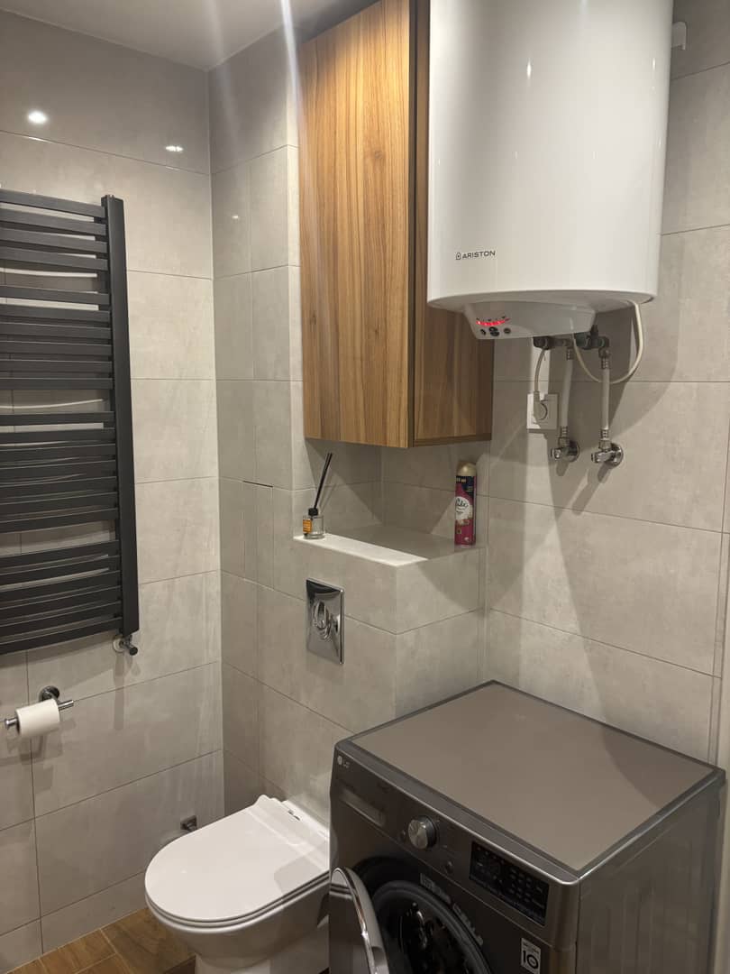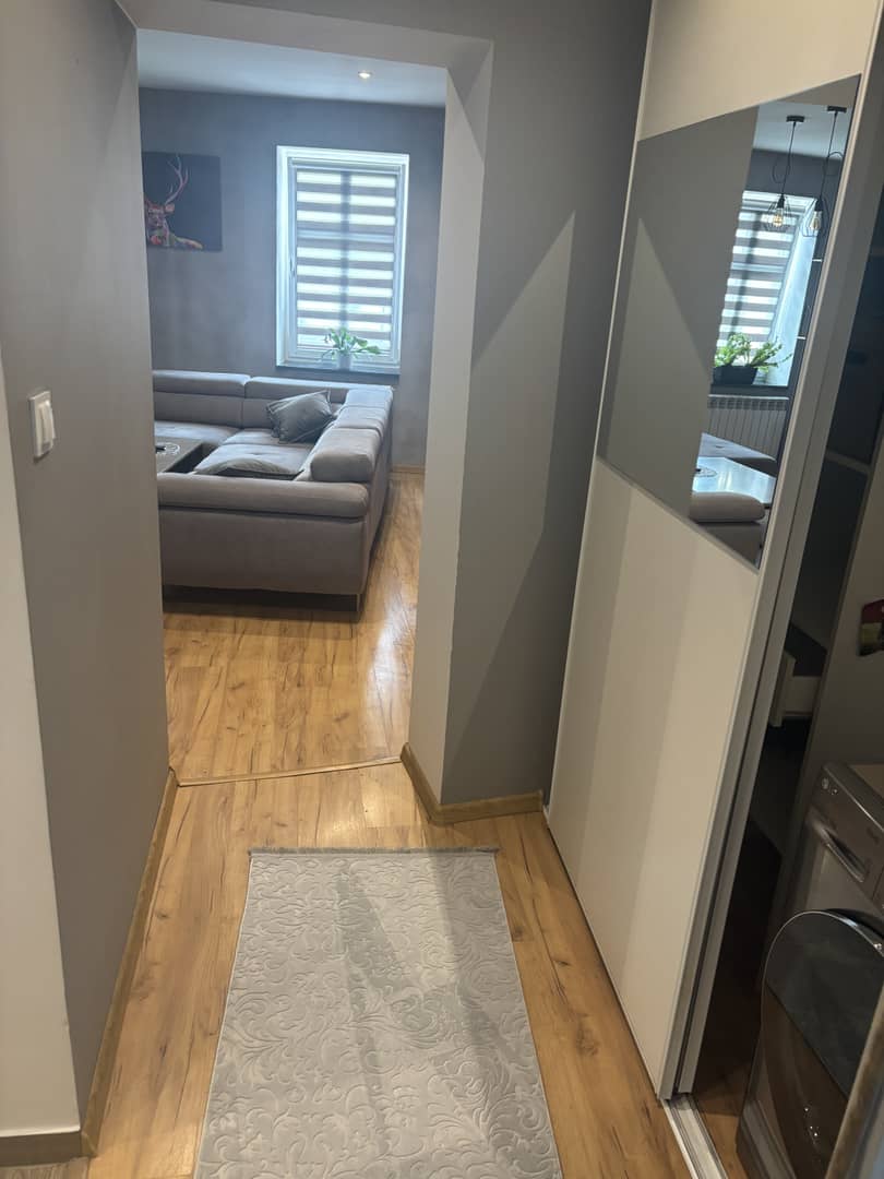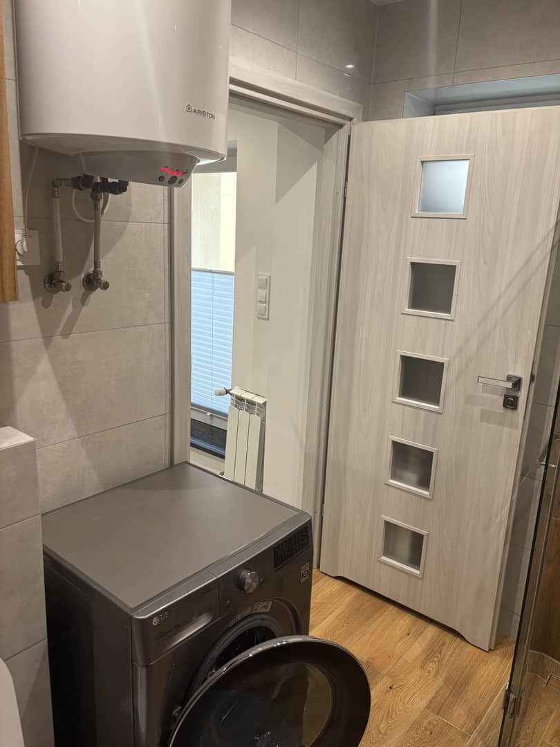 Mieszkanie w pełni wyposażone (m.in. narożnik, łóżko, komody, lodówka, zmywarka, płyta indukcyjna, okap, piekarnik, pralka, suszarka elektryczna, 2x TV, soundbar) oraz zamontowany wiszący biokominek.