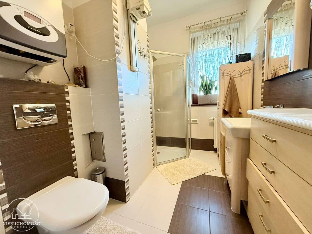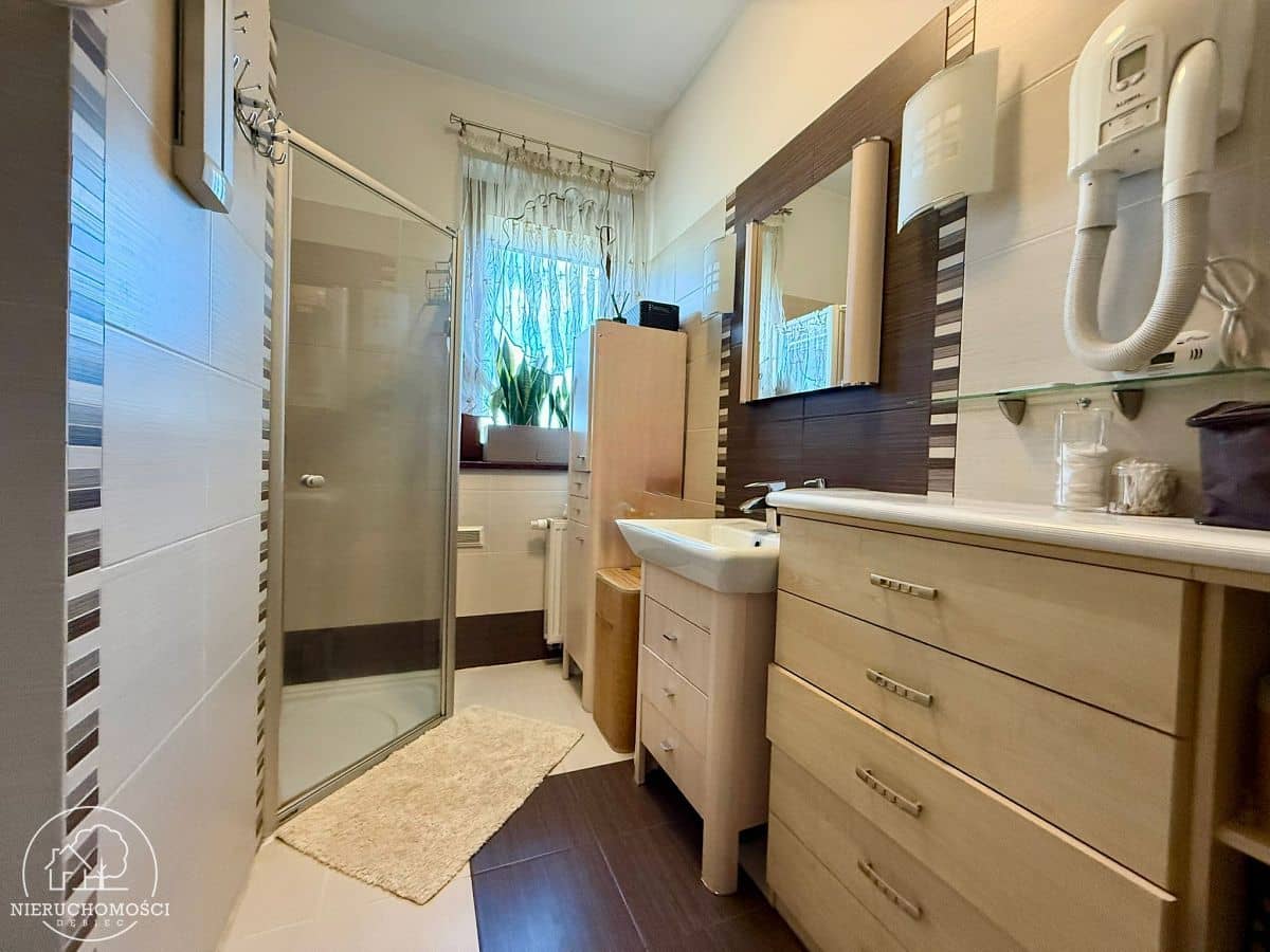 - łazienka z kabiną prysznicową i wc.