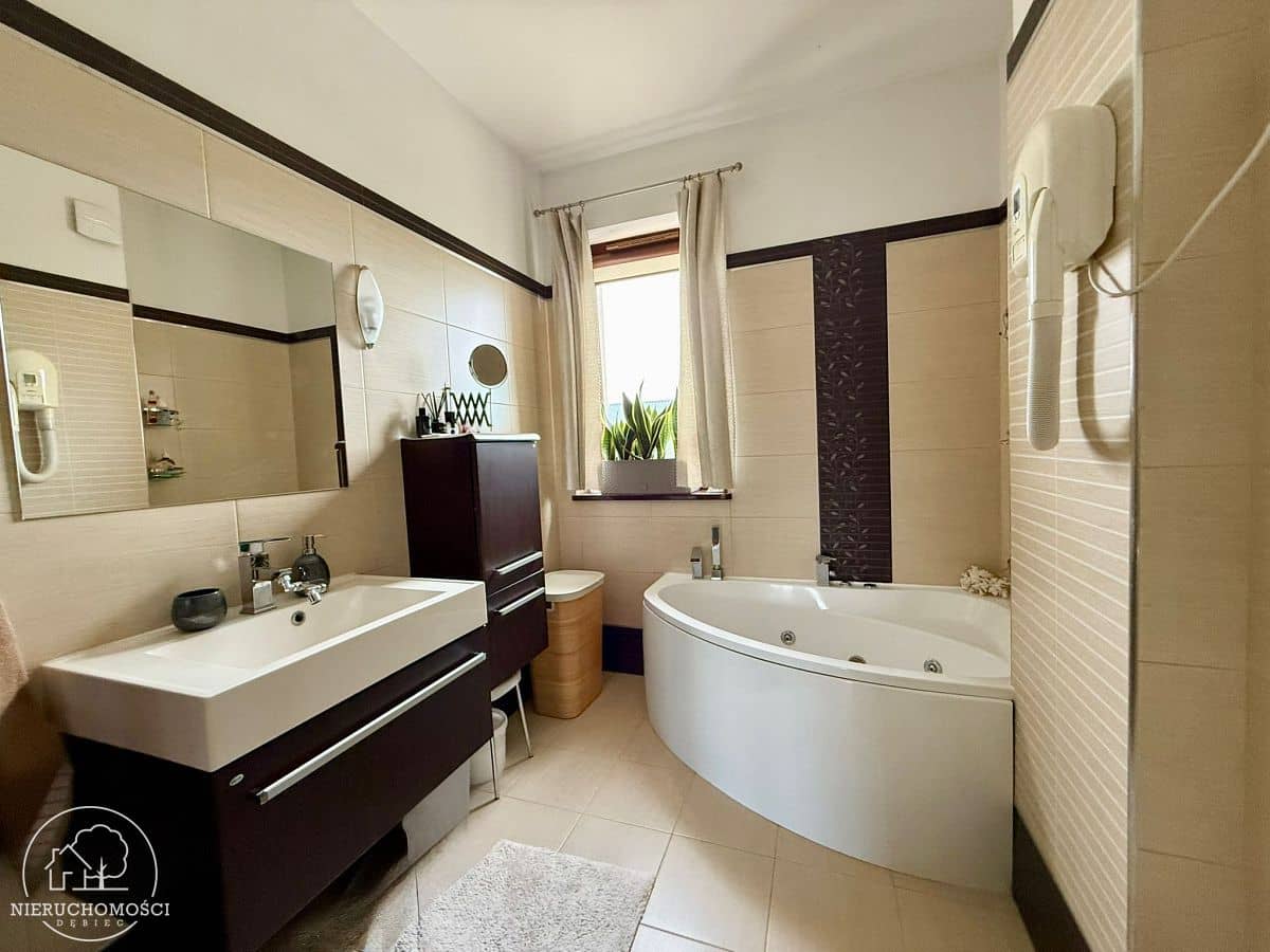 Dom wyposażony w system alarmowy oraz stacje uzdatniania wody (zmiękczanie wody, system odwróconej osmozy).