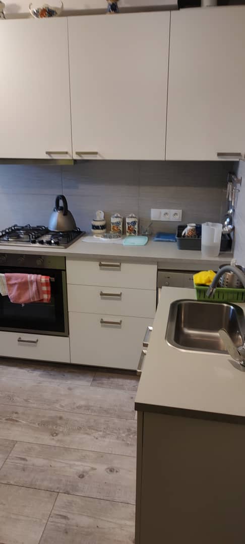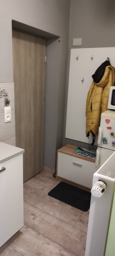 Kuchnia jest nowa i w pełni wyposażona w sprzęt AGD, który wraz z meblami pozostaje w mieszkaniu, co czyni ofertę gotową do wprowadzenia bez dodatkowych nakładów.