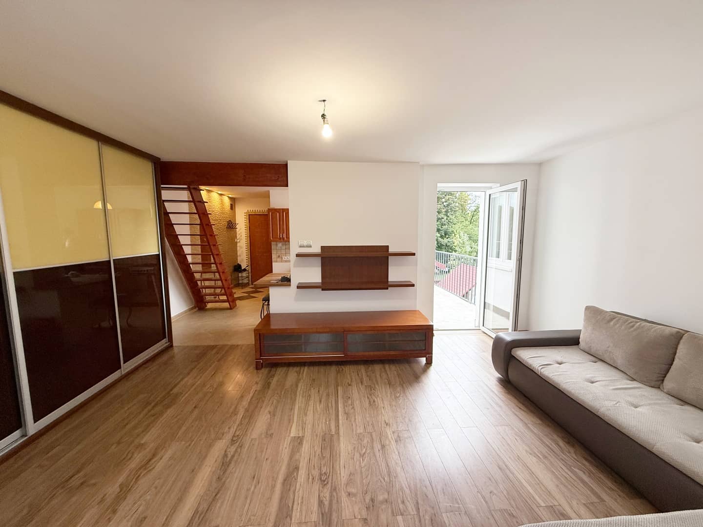 Powierzchnia użytkowa lokalu wynosi 38m2, na którą składają się - duży pokój dzienny z wyjściem na balkon, kuchnia, łazienka z toaletą oraz przedpokój. Dodatkowo antresola - pełniąca funkcję dodatkowej przestrzeni do przechowywania. Do mieszkania przynależy również piwnica.