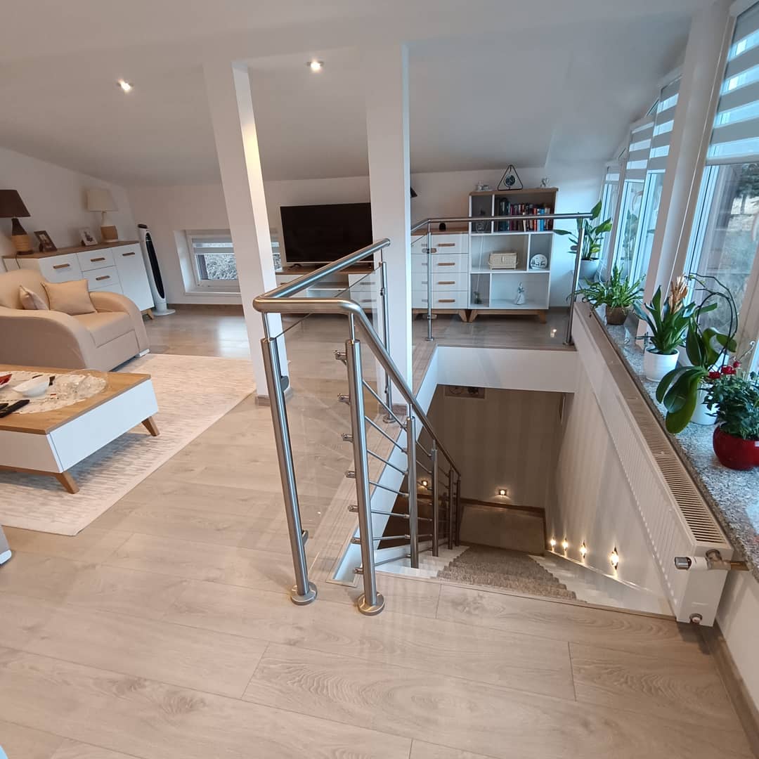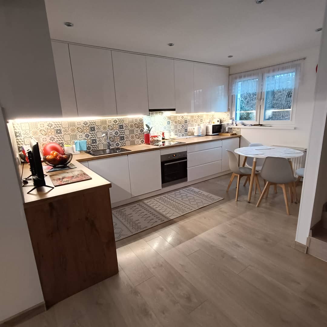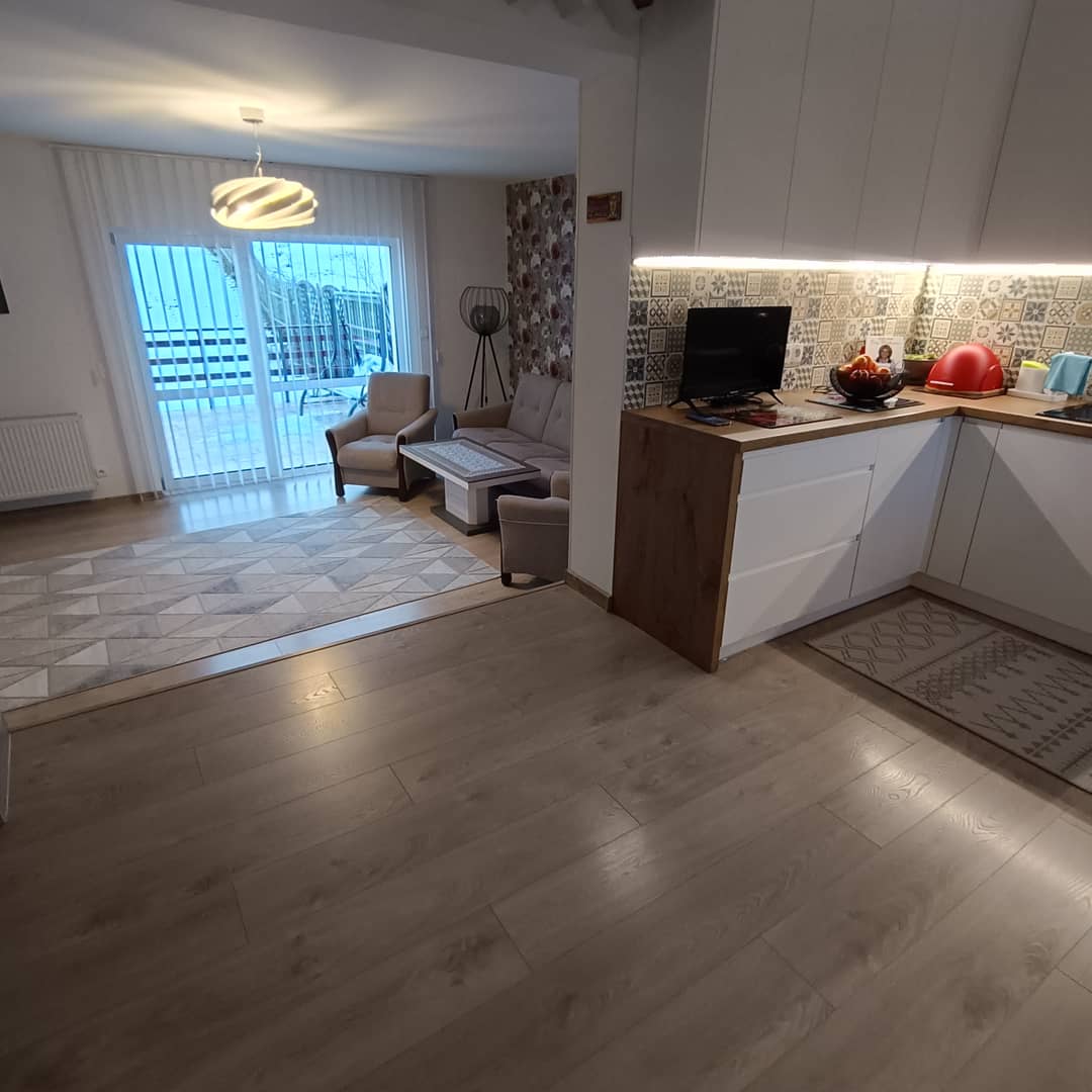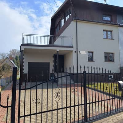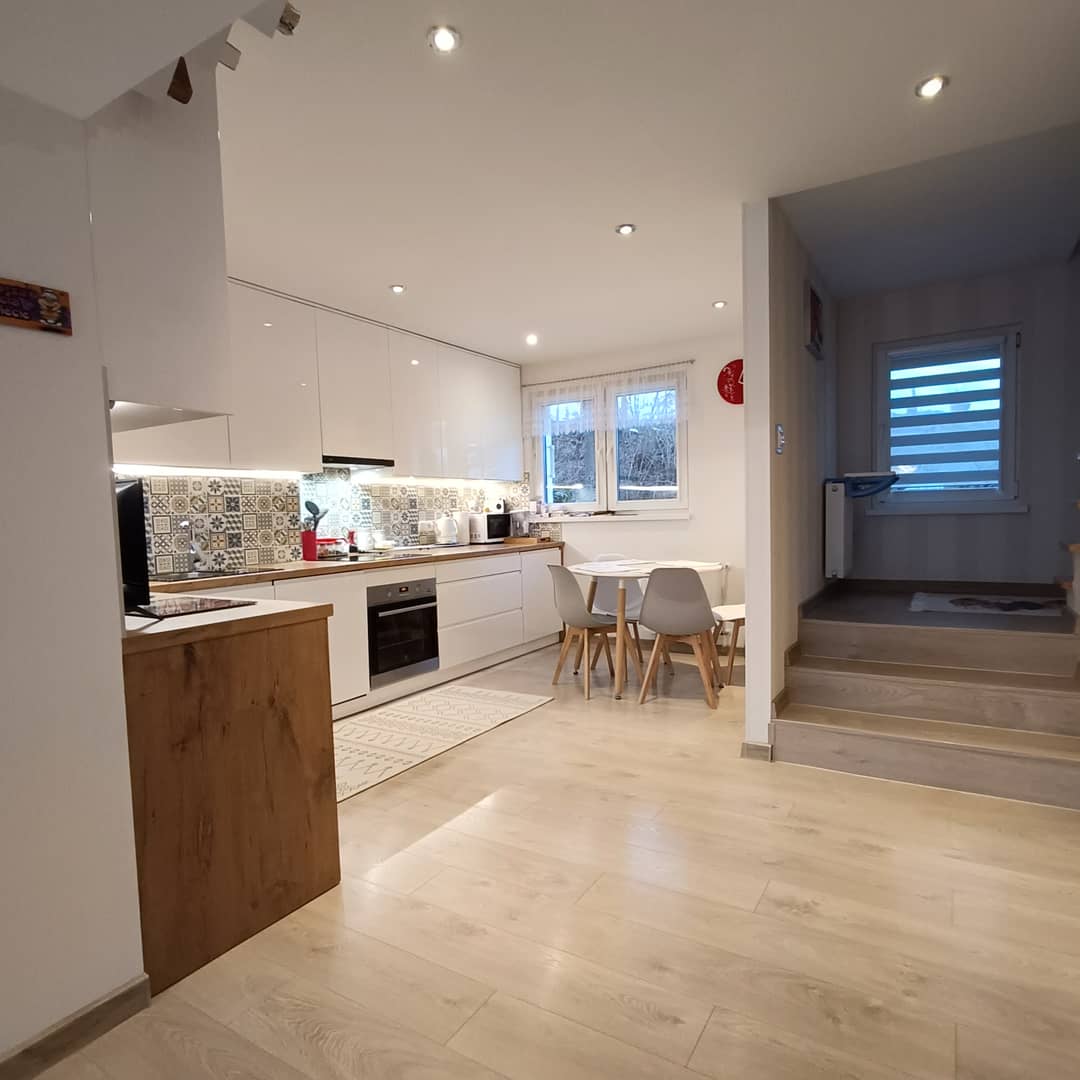 Komfortowo wykończony dom w zabudowie bliźniaczej, w Kowarach. Posadowiony na działce 523 m2 o powierzchni całkowitej około 190 m2 i użytkowej 153 m2. W przyziemiu budynku znajduje się pralnia, kotłownia, warsztat plus 2 pom. gospodarcze. Parter obejmuje przedpokój, łazienkę, wyposażoną i umeblowaną kuchnie, połączona z jadalnią i poniżej salonem z wyjściem na drewniany taras, połączony z ogrodem. Na piętro prowadzą nowe, podświetlane schody gdzie znajduje się korytarz, 2 pokoje, łazienka, garderoba oraz taras około 50 m2 z pięknymi widokami na panoramę miasta i pobliskie wzgórza. Powyżej otwarty, przestronny i słoneczny salon oraz sypialnia z mniejszą garderobą i wyjściem na balkon. Budowany pod koniec lat 70 z superexu, ocieplony suprema, dach pokryty blachą. W 2019 roku dom przeszedł kapitalny remont, wymieniono wszystkie instalacje, położone nowe tynki i gładzie, podłogi na całości pokryte panelami, wymienione okna na pcv 3 szybowe, nowe drzwi wewnętrzne i zewnętrzne. Ogrzewanie piecem gazowym, bardzo ekonomicznym firmy Vaillant z zasobnikiem na wodę. Dodatkowo zamontowane panele fotowoltaiczne. W bryle budynku garaż z bramą na pilota, przed domem położona kostka, teren ogrodzony metalowym płotem. Atrakcyjna lokalizacja z uwagi na bliskość centrum miasta a zarazem w otoczeniu natury i zieleni. Dom bardzo wygodny i komfortowy, urządzony gustownie, do zamieszkania bez dodatkowego wkładu finansowego. Cena 880 000 zł podlega negocjacji. Oferta dostępna tylko w Naszym biurze, serdecznie polecam i zapraszam na prezentację Nieruchomości Rychlewski