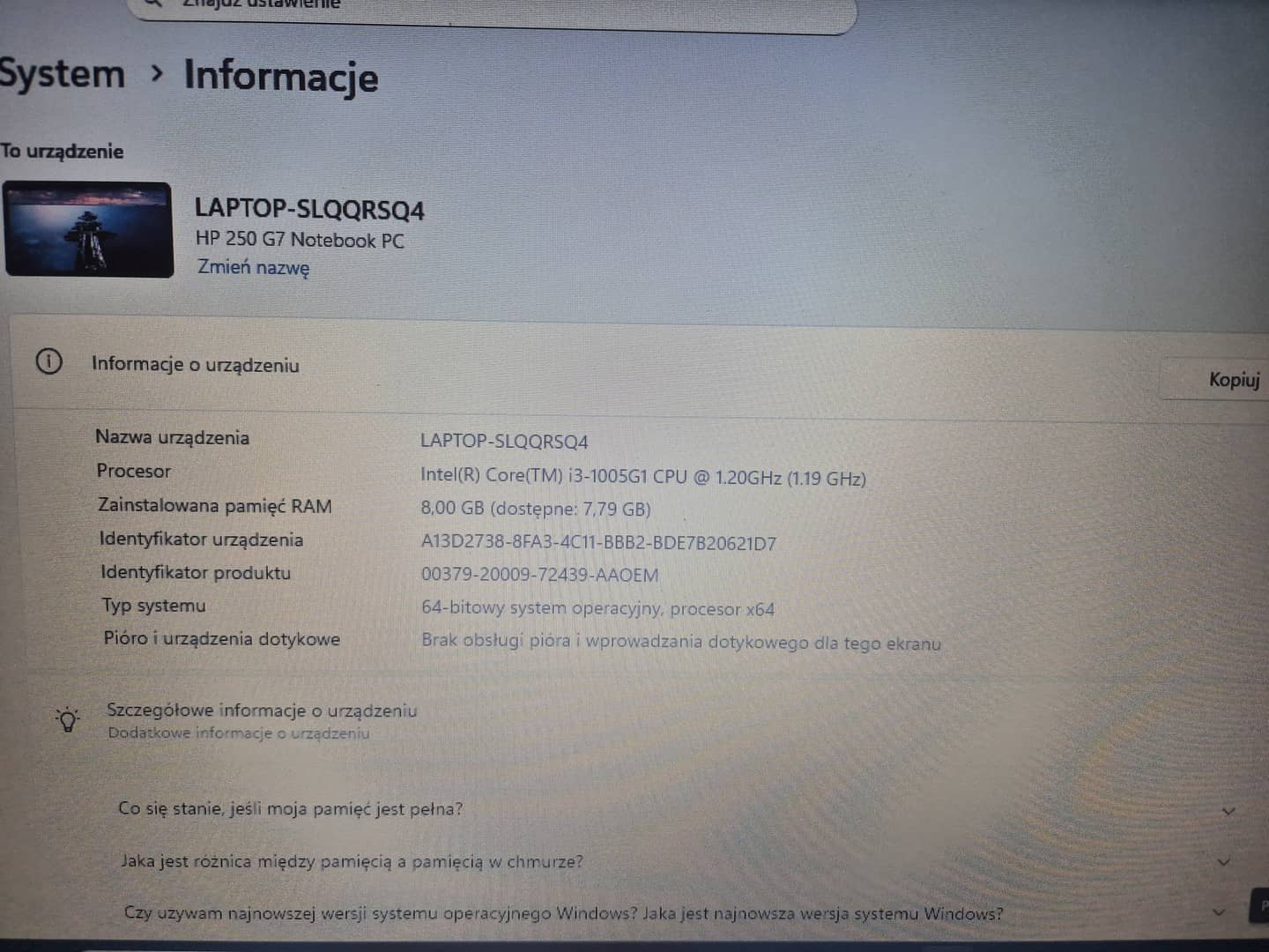 Sprzedam bardzo mało używanego laptopa HP. Stan jak nowy, aktualizacja Windows 11. Parametry widoczne na zdjęciach. Cena 320 zł.
