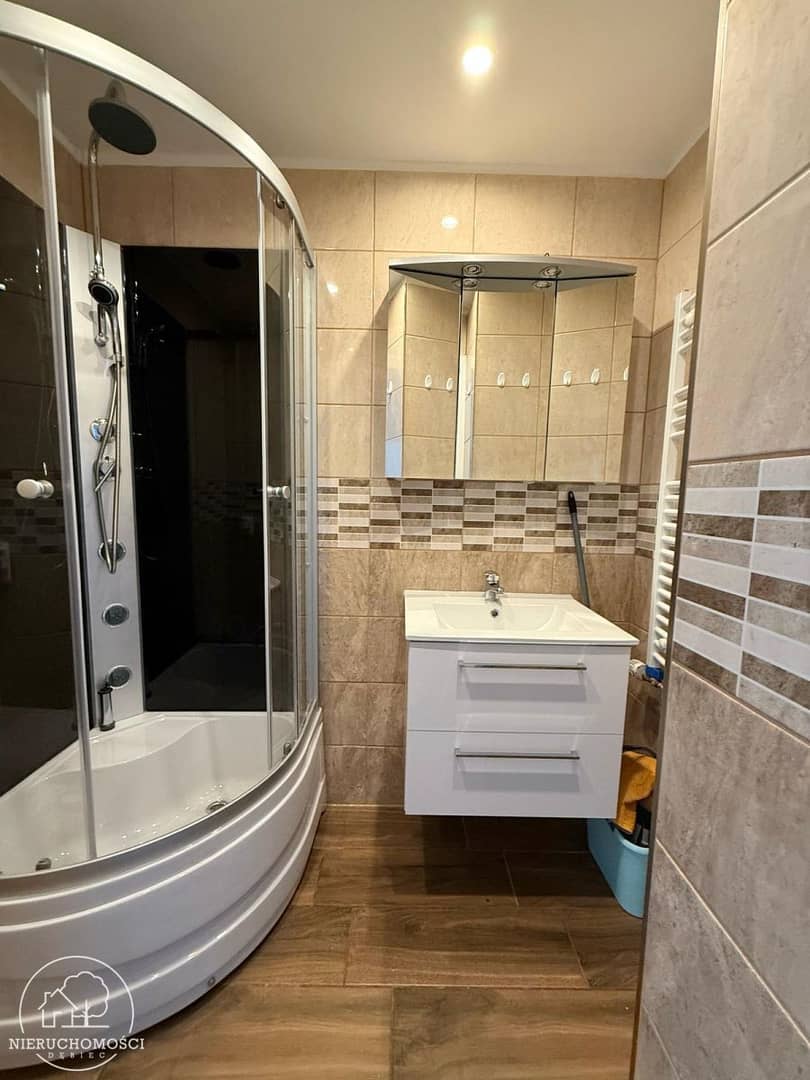 Na podłogach panele oraz kafle. Stolarka okienna PCV. Ogrzewanie oraz ciepła woda z sieci miejskiej.