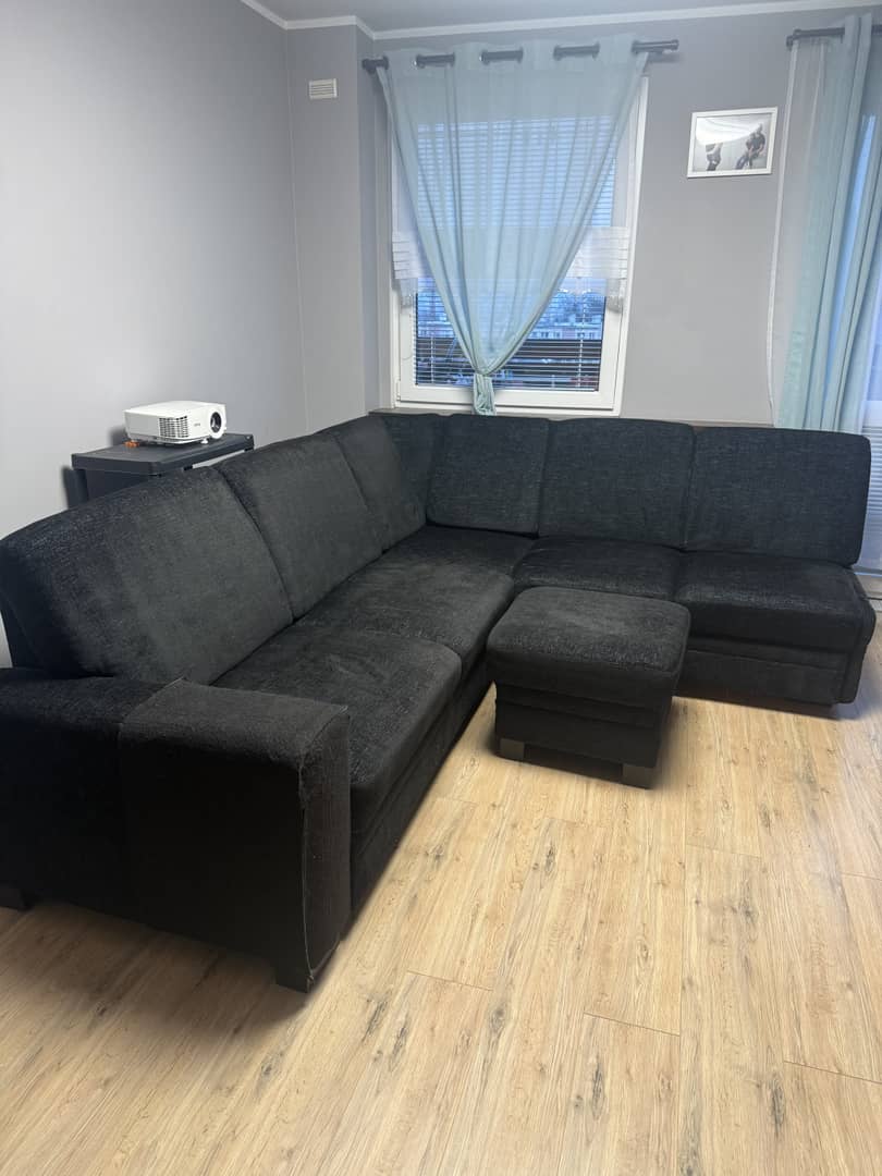 Sprzedam narożnik z funkcją spania i pojemnikiem na pościel, wymiary 260x200, regulowane zagłówki, siedzenia bardzo komfortowe, tapicerka do ewentualnego odświeżenia.W komplecie podnóżek/pufa ze schowkiem. Stan oceniam na dobry, na pewno jeszcze posłuży.Zadrapanie widoczne na zdjęciu jest z tyłu w praktycznie niewidocznym miejscu. Odbiór choćby zaraz :-) cena 450zł (do negocjacji)