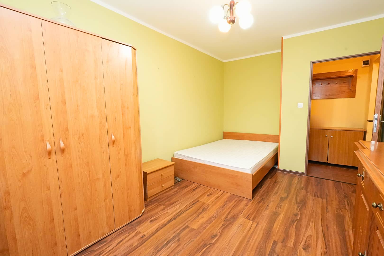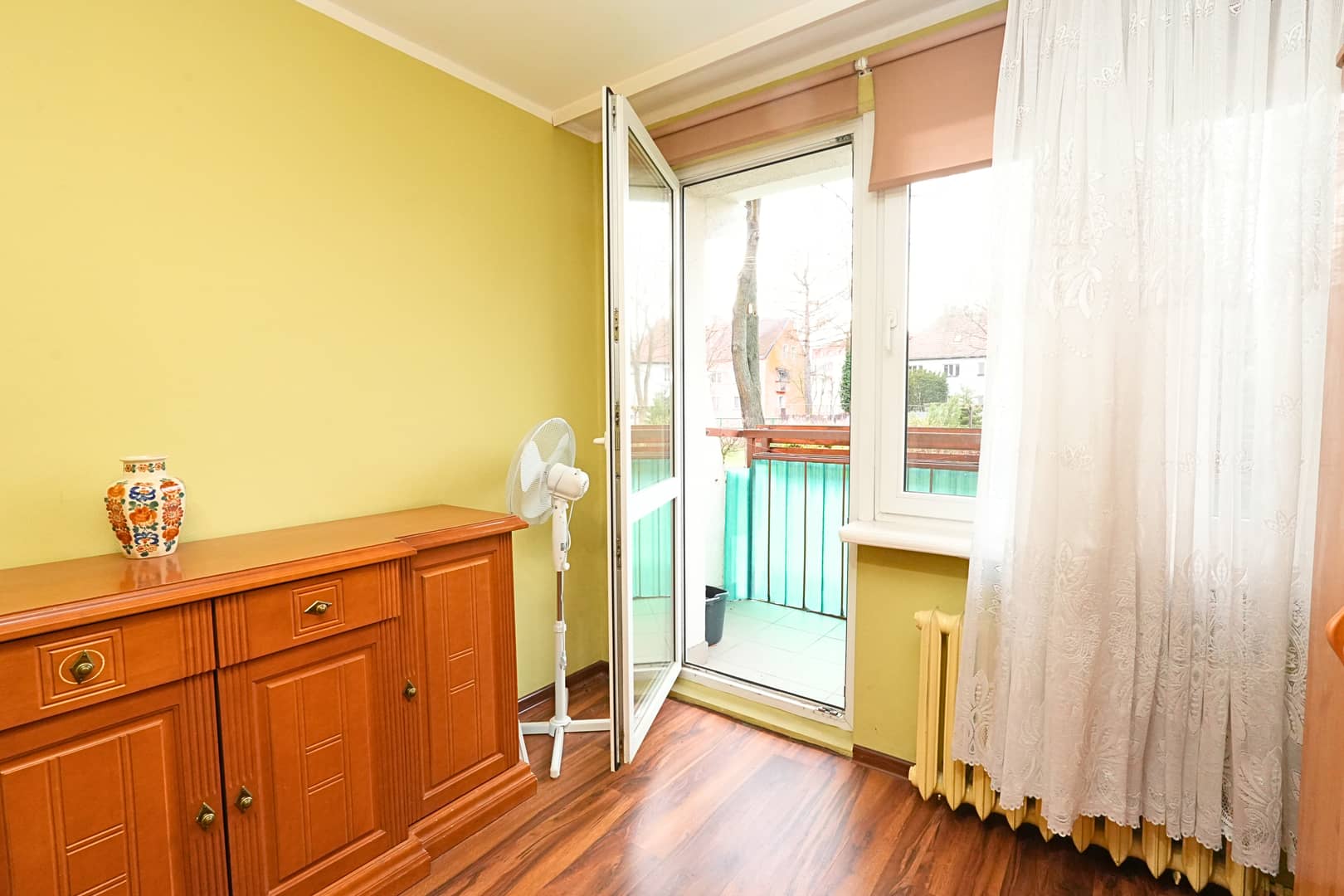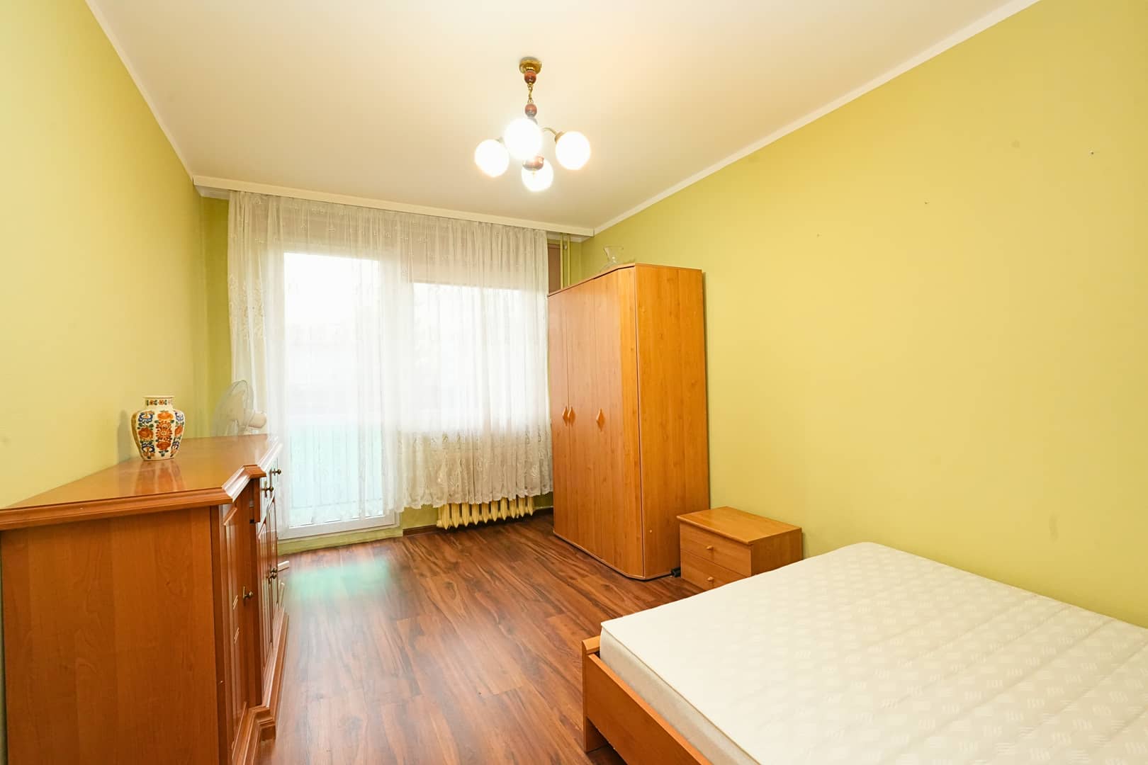 sypialnia z wyjściem na balkon od strony zielonej.