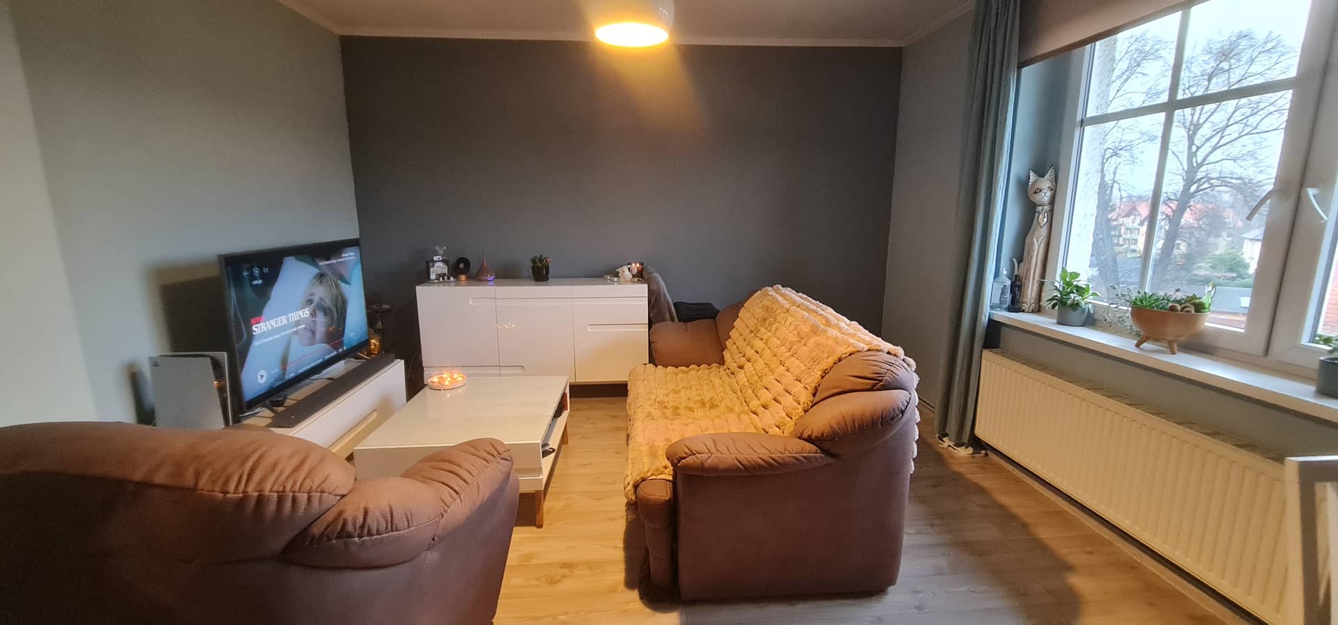 Za ciepło odpowiada nowoczesny, dwufunkcyjny piec gazowy, dzięki czemu możesz samodzielnie regulować temperaturę według własnych potrzeb.