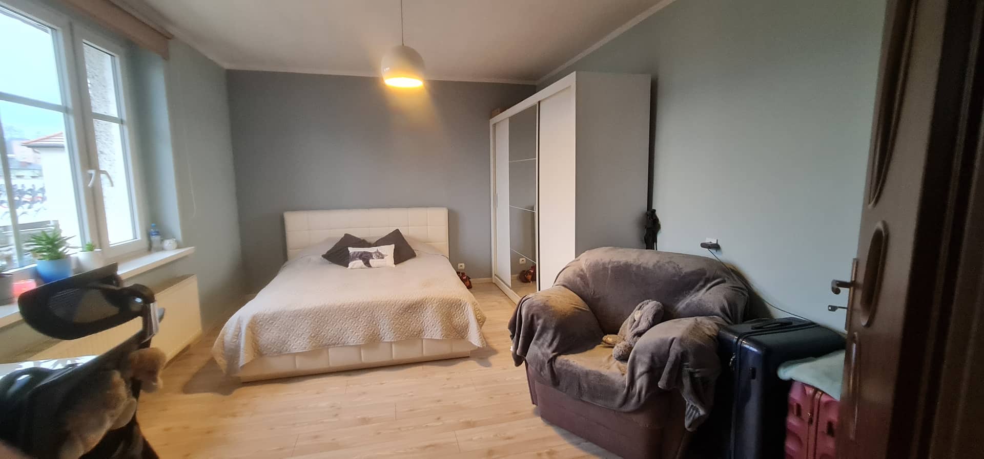 Na podłogach znajdują się panele oraz kafle, a okna PCV z podwójnymi szybami zapewniają dobrą izolację i niższe koszty ogrzewania.