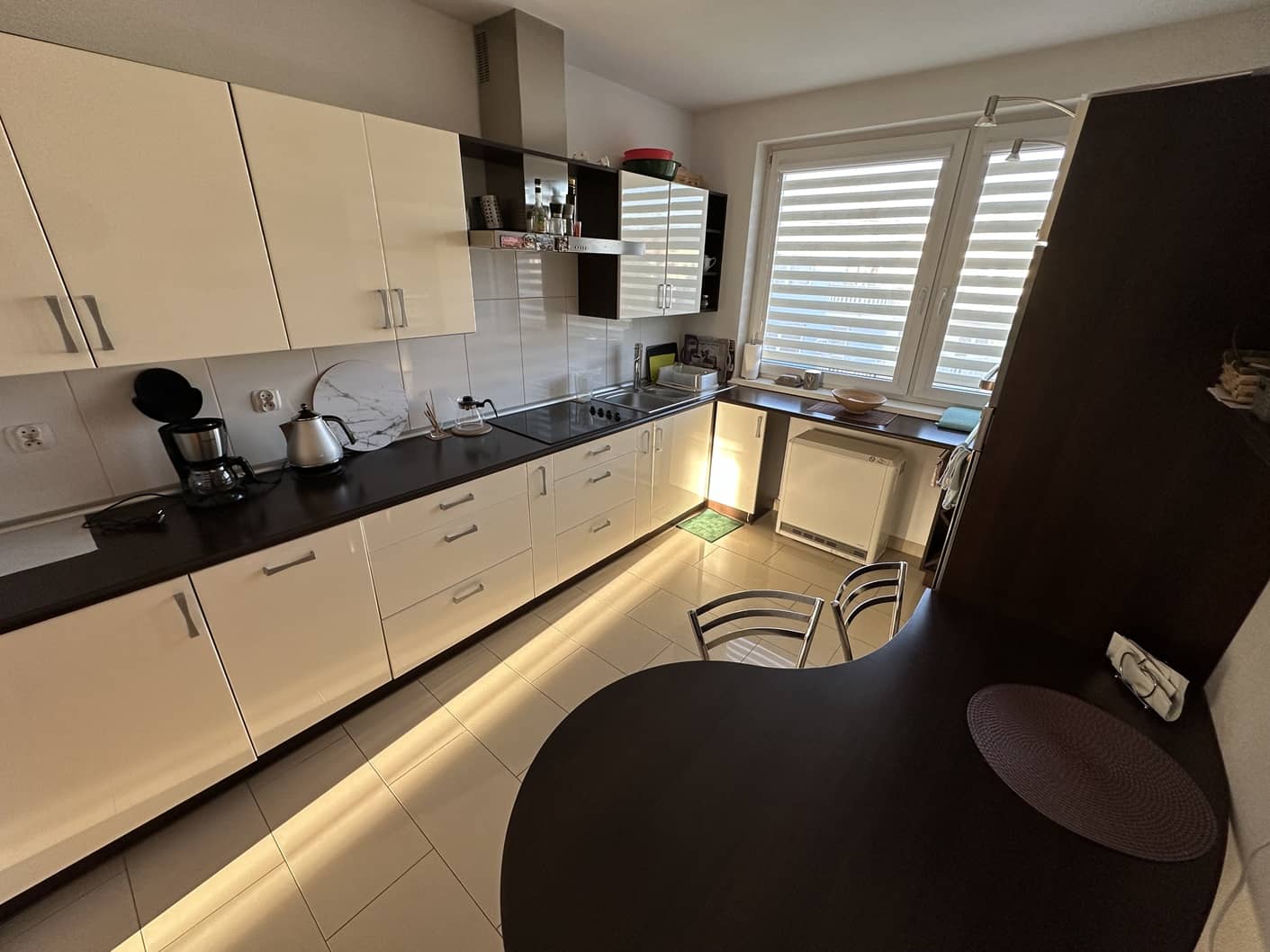 - kuchnia z oknem 10m2 z zabudową kuchenną i sprzętem AGD