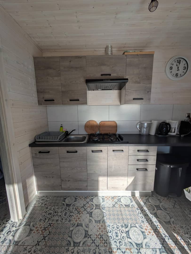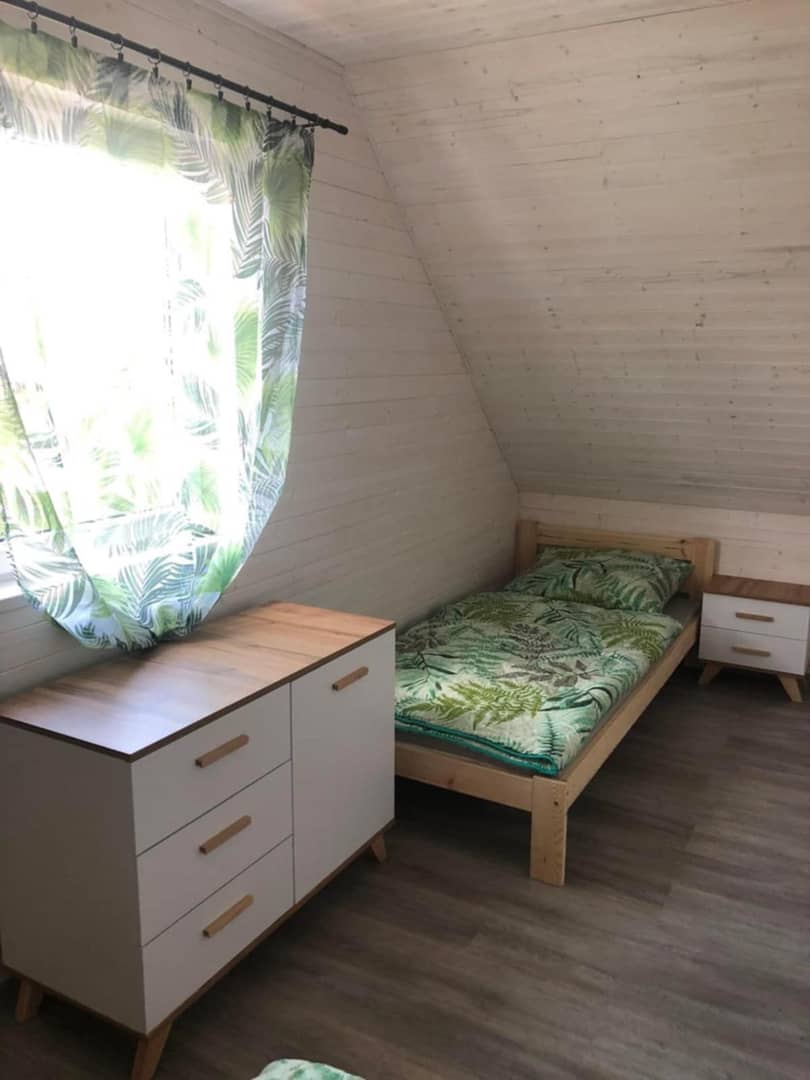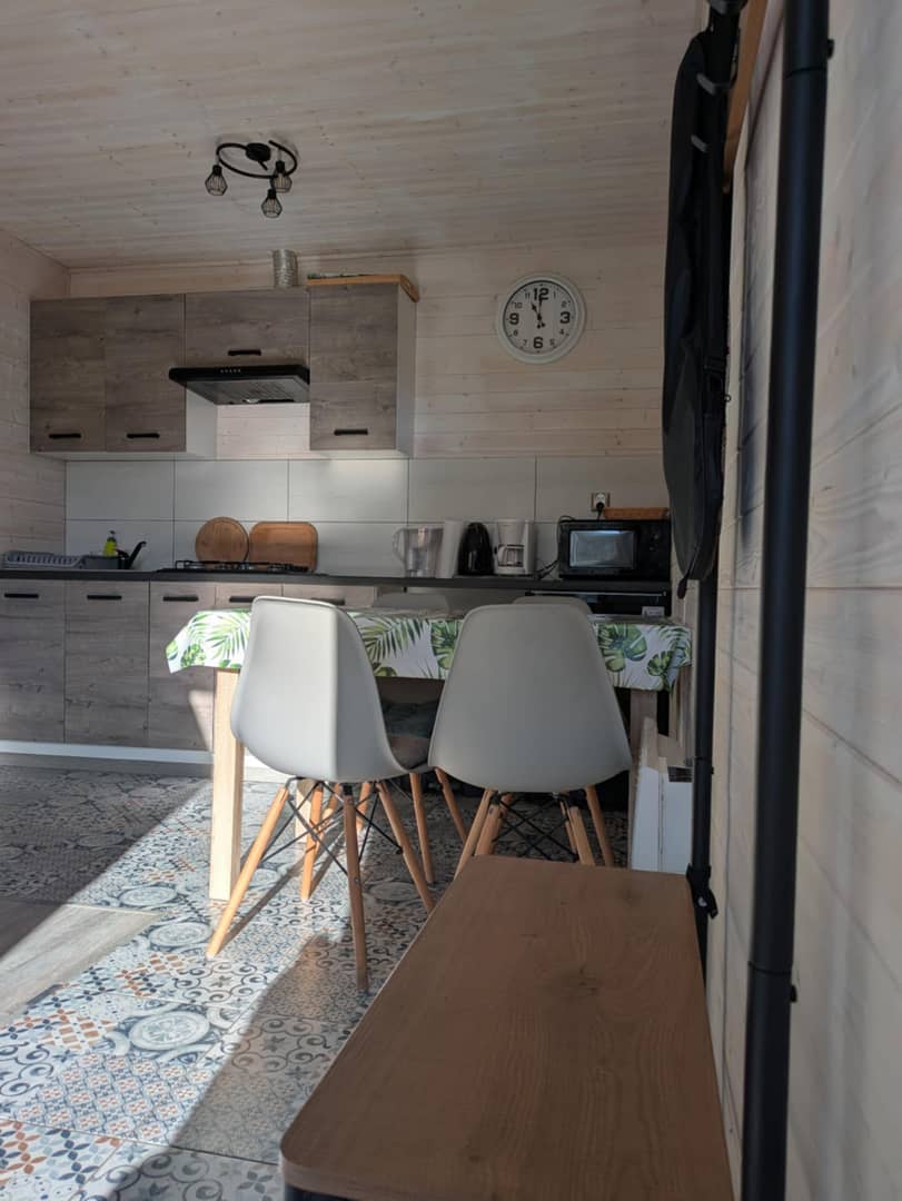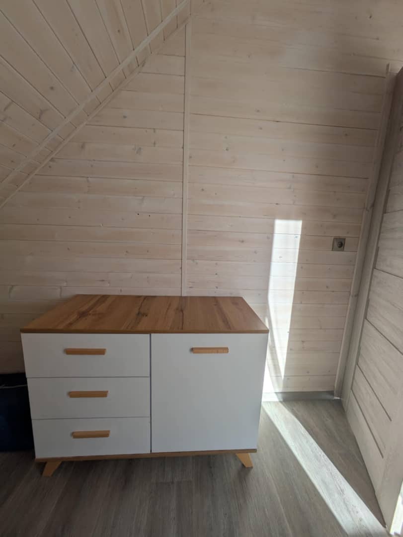 Domek w pełni wyposażony w niezbędne sprzęty AGD: czajnik, mikrofalówka, lodówka, ekspres do kawy przelewowy oraz kuchenka gazowa. Istnieje możliwość dodatkowego umeblowania według potrzeb najemcy.