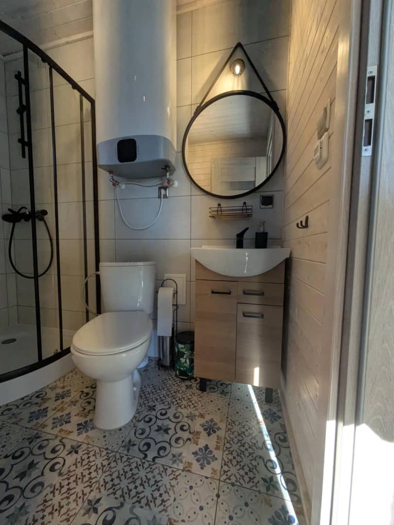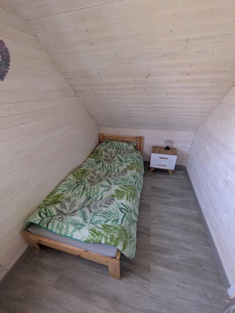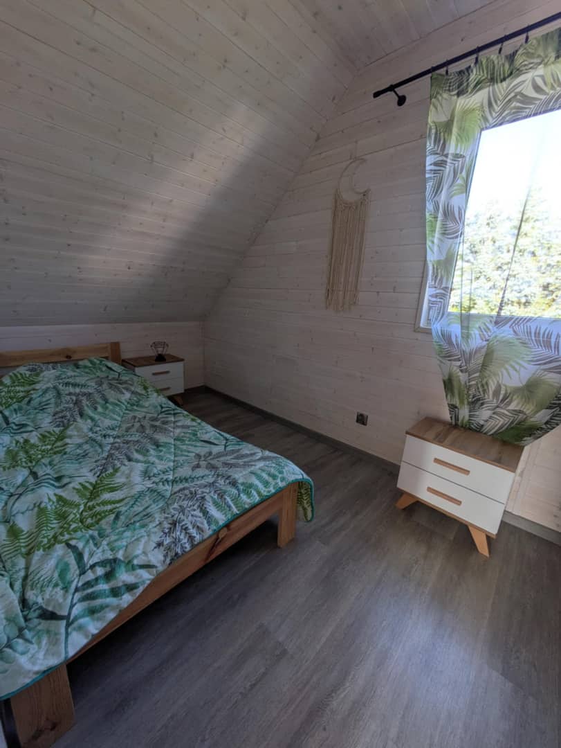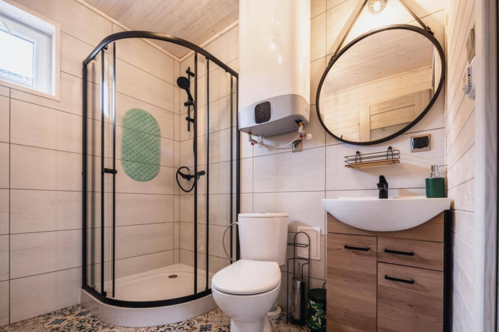 Domek w pełni wyposażony w niezbędne sprzęty AGD: czajnik, mikrofalówka, lodówka, ekspres do kawy przelewowy oraz kuchenka gazowa. Istnieje możliwość dodatkowego umeblowania według potrzeb najemcy.