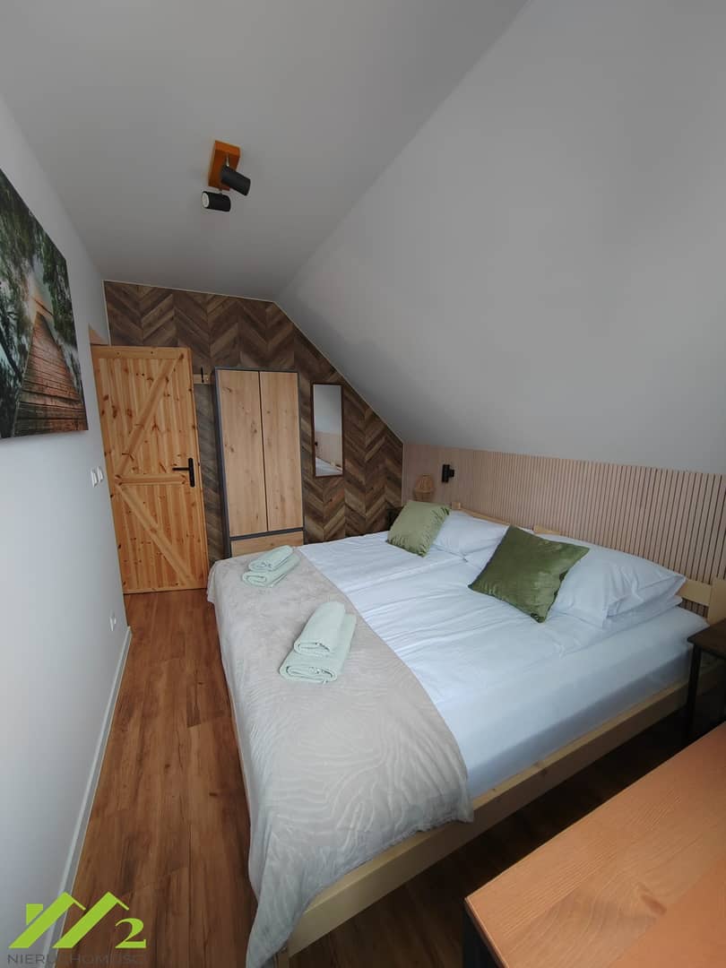 Dom jest w pełni wyposażony i gotowy do użytkowania, obecnie funkcjonuje jako obiekt noclegowy obsługiwany przez platformy rezerwacyjne typu Booking.