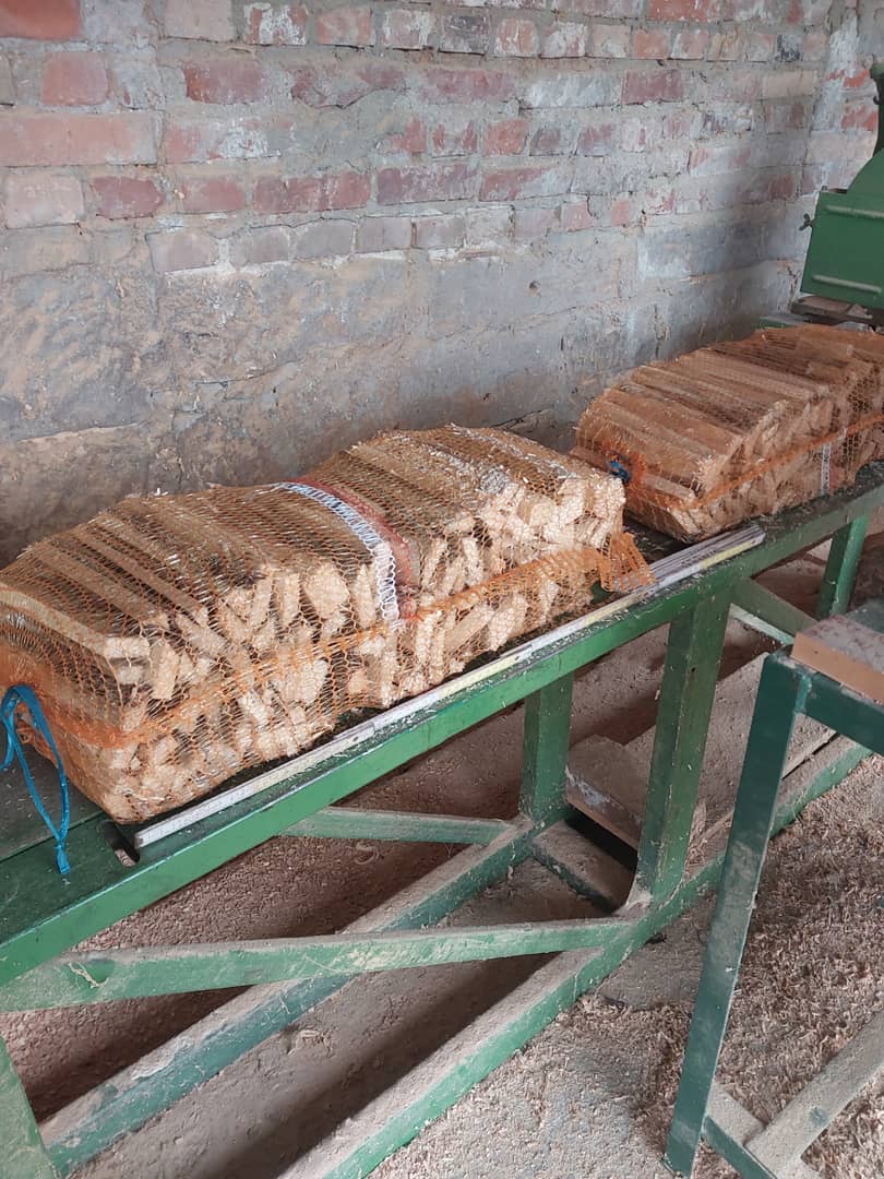 Rozpalka spakowana w worki drewno opalowe pocięte na klocki lub rąbane transport