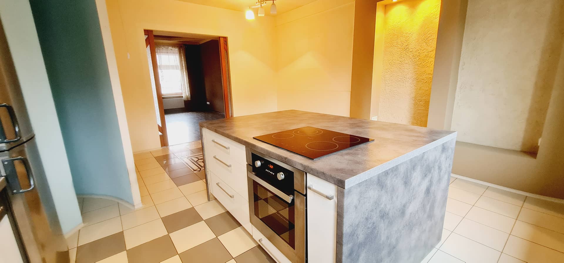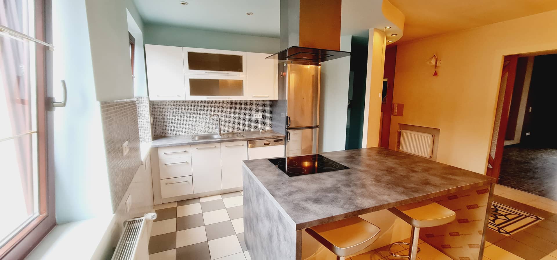 Kuchnia została w pełni umeblowana i wyposażona, a jej centralnym punktem jest efektowna wyspa, która nadaje przestrzeni nowoczesnego i funkcjonalnego charakteru.