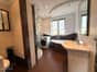 Na podłogach panele oraz kafle, stolarka okienna PCV.
