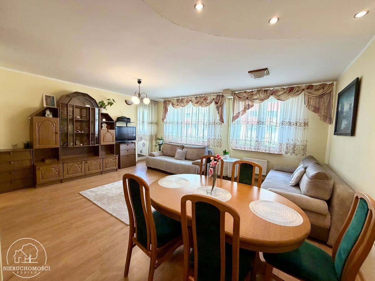 Biuro Nieruchomości Dębiec ma do zaoferowania mieszkanie trzypokojowe w Podgórzynie. Mieszkanie o powierzchni użytkowej 80,98 m2 usytuowane na parterze pożądanego i kameralnego osiedla składa