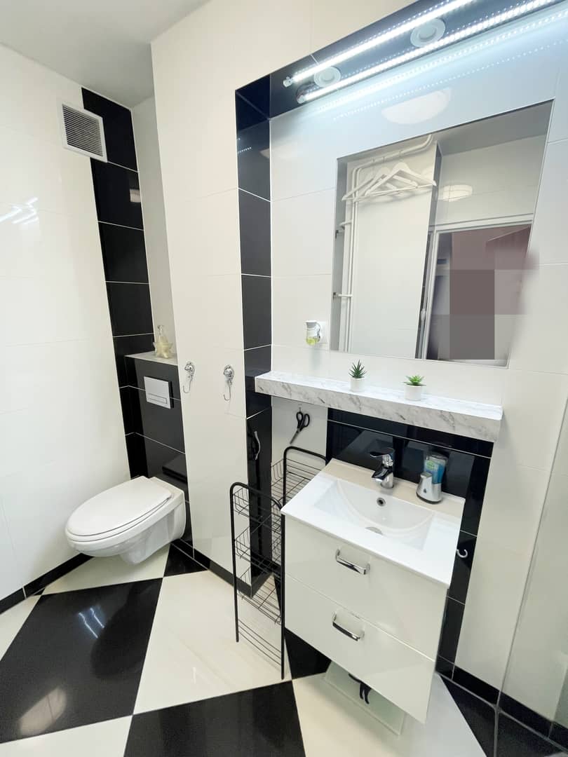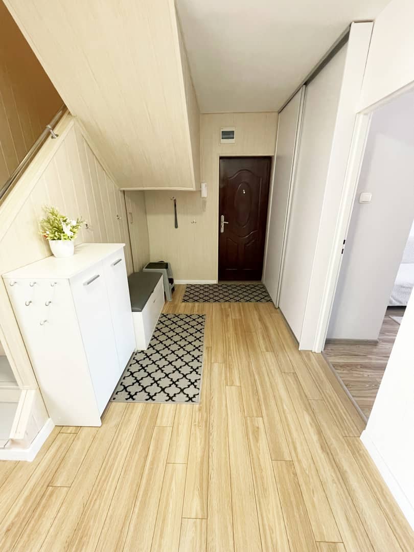 Mieszkanie urządzone w sposób ładny i bardzo funkcjonalny. Dużym atutem są dwie łazienki - po jednej na każdym poziomie.