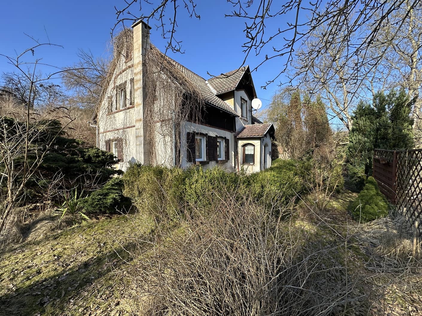 Wokół dużo zieleni, choć w tym okresie jest trochę szaro, dopiero wiosna pokaże w całej okazałości piękno lokalizacji domu.