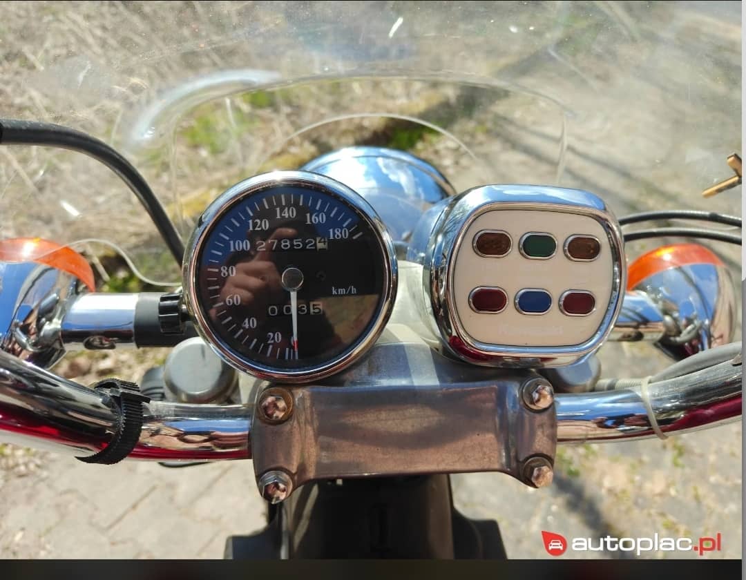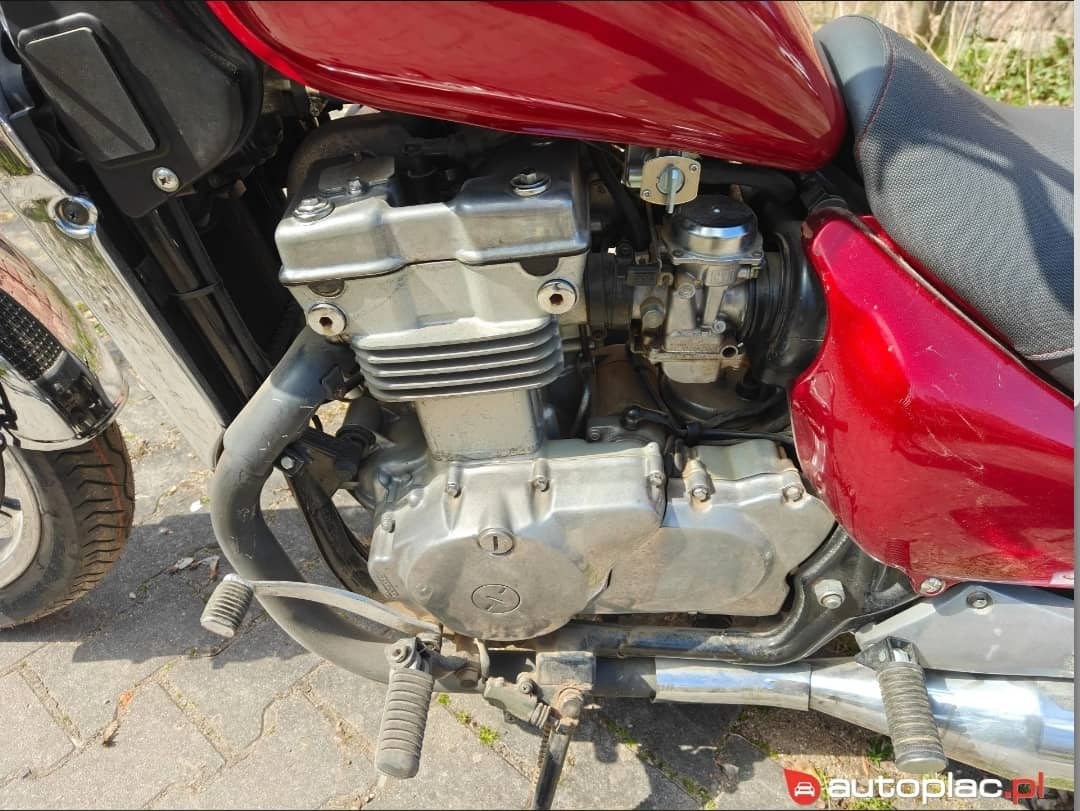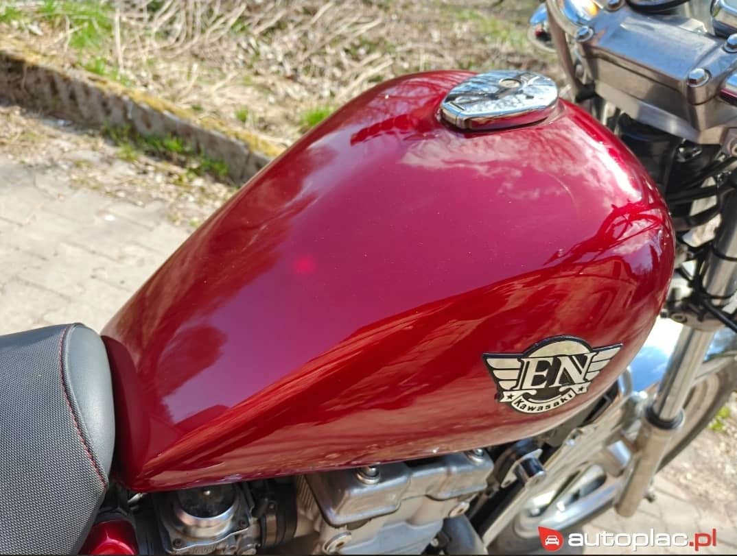 Sprzedam motocykl Kawasaki EN500 gotowy do jazdy. Pojazd wyprodukowany w 1992 roku, z silnikiem o pojemności 499 cm³ i mocy 50 KM. Przebieg pojazdu wynosi 27852 km. Napęd realizowany za pomocą pasa. Motocykl w stylowym czerwonym kolorze, typu chopper, co nadaje mu charakterystyczny wygląd. Motocykl posiada nowe opony, nowe sprzęgło wraz z olejem. Świeżo wymieniony olej w silniku wraz z filtrami. Nowe świece zapłonowe oraz wiele innych drobiazgów, piękną nową kanapę wykończoną czerwoną nitką.
