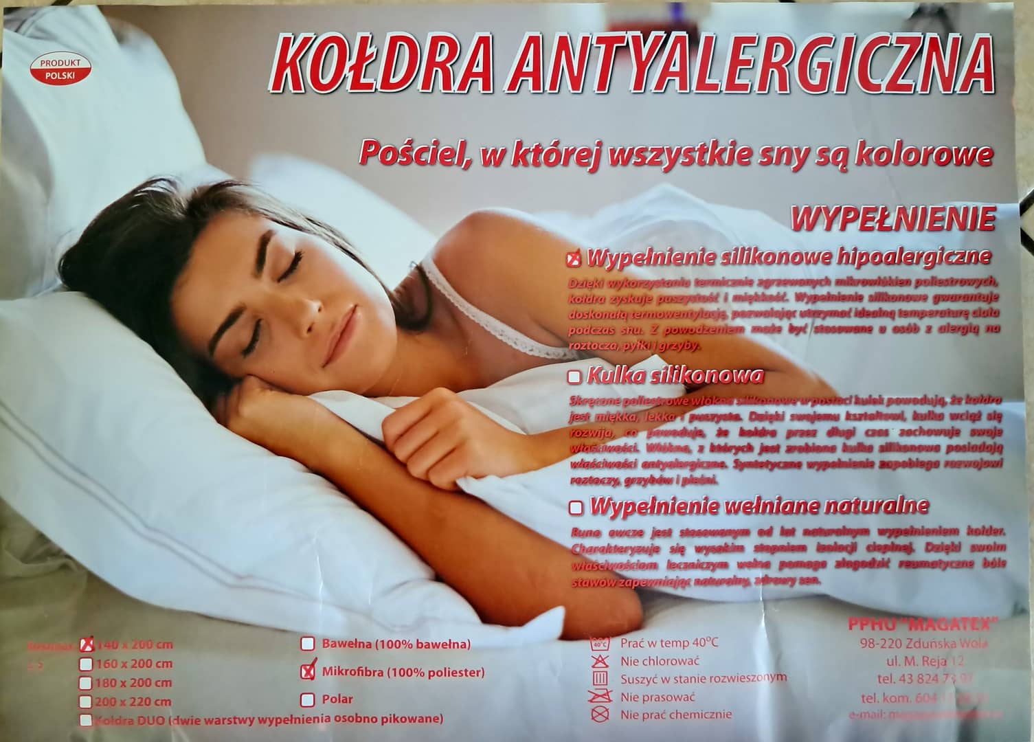 Sprzedam komplet kołdra + poduszka. Wykonanie antyalergiczne.