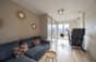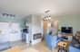przestronny, jasny salon z aneksem kuchennym i jadalnią,