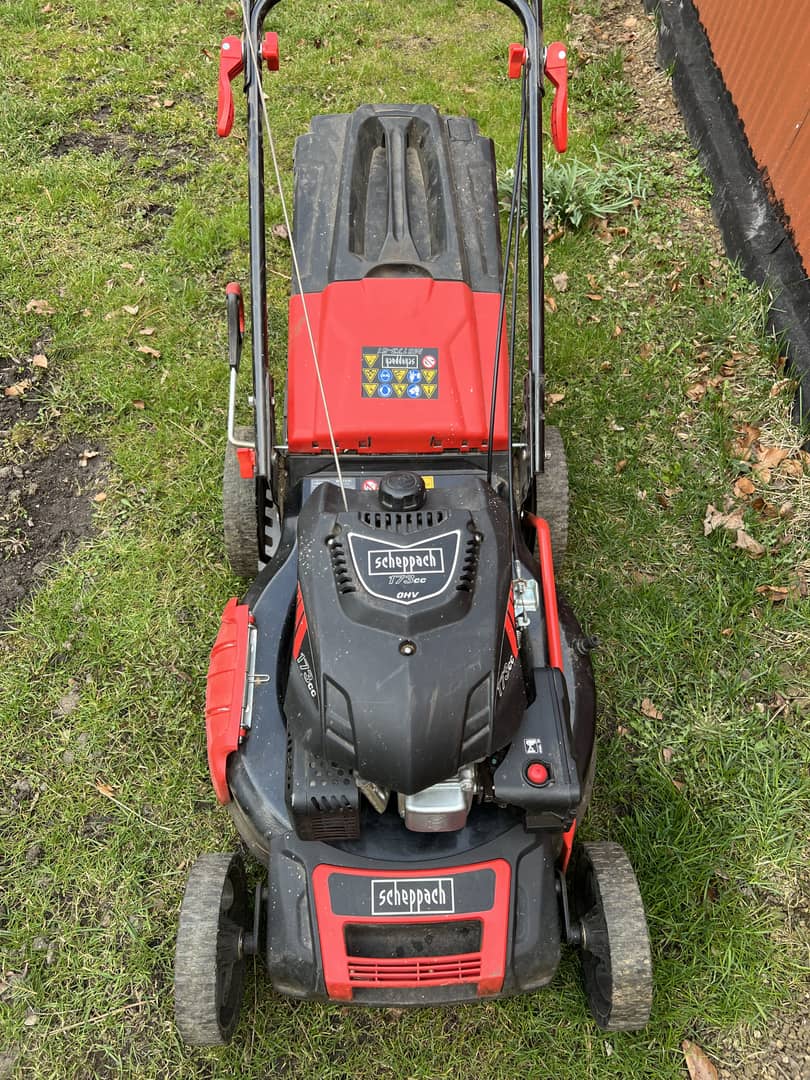 Używana kosiarka spalinowa Scheppach z napędem i dużym koszem, sprowadzona z Niemiec. Urządzenie jest w dobrym stanie technicznym i gotowe do użytku. Solidna konstrukcja i wydajny silnik zapewniają efektywne koszenie, mulczowanie trawników.