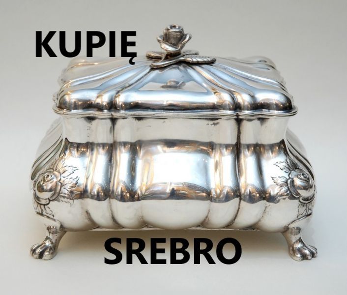 zegarki, srebrną biżuterię, srebrne cukiernice, sztućce, monety srebrne i
