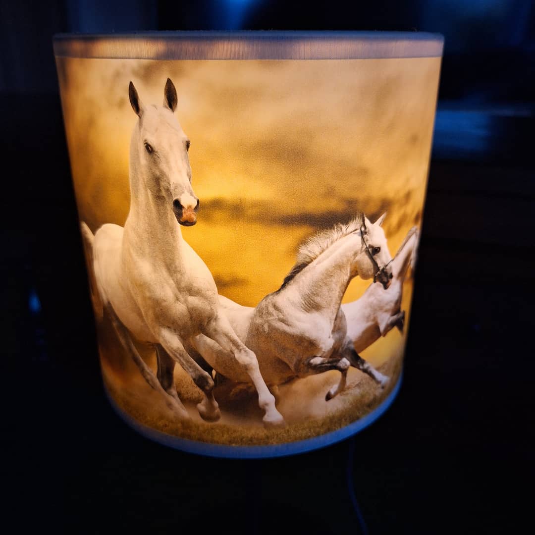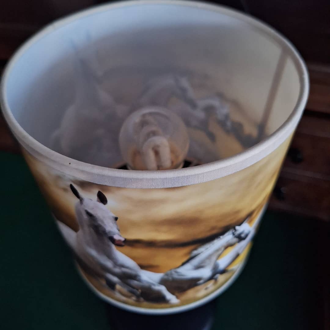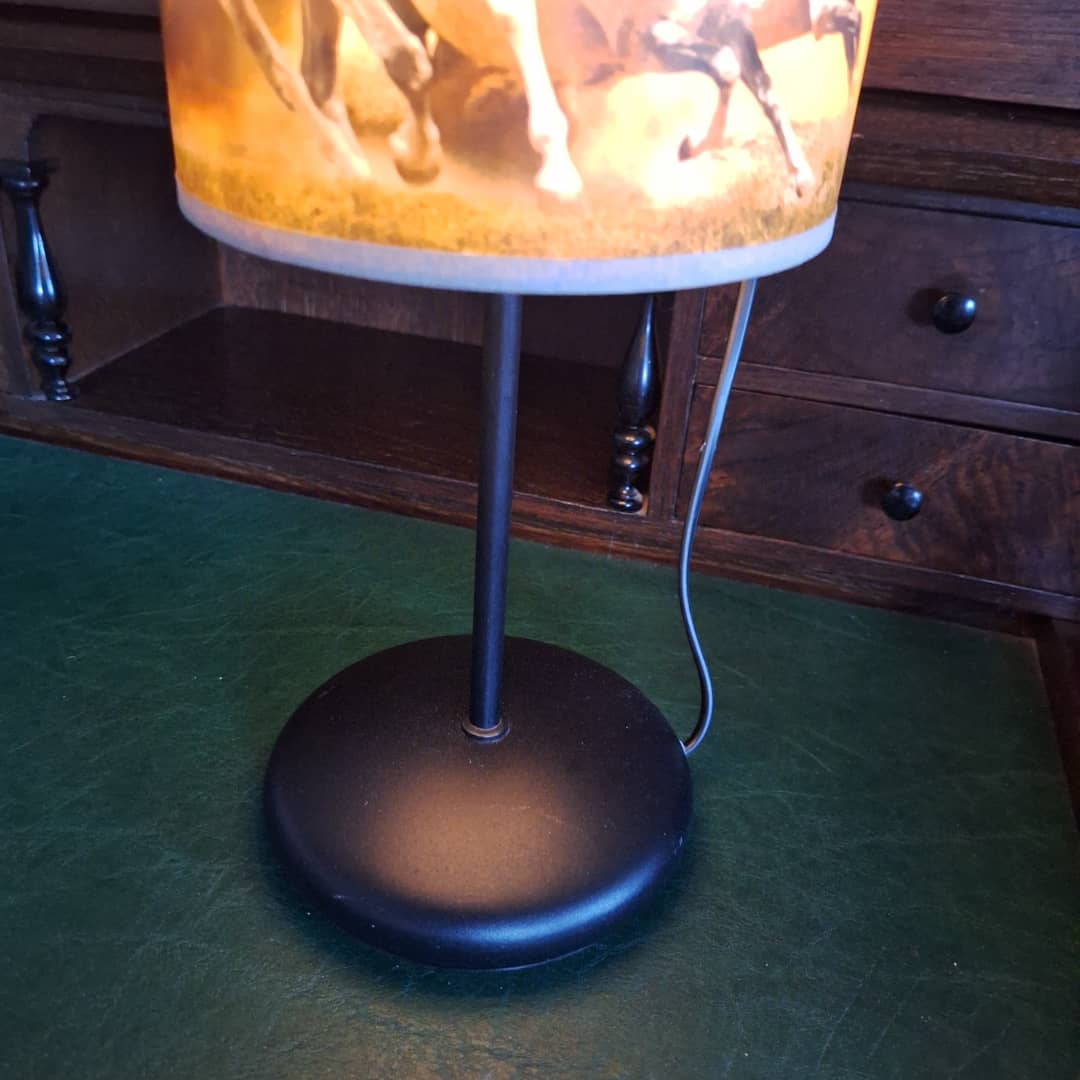 Piękna lampka nocna ,abażurek to konie w galopie, elektryczna i energetyczna.Podstawa metalowa, w komplecie z żarówką, wysokość 35 cm. Możliwy dowóz lub wysyłka. Cena 48 zł.