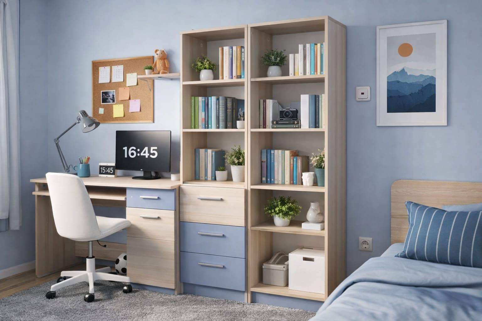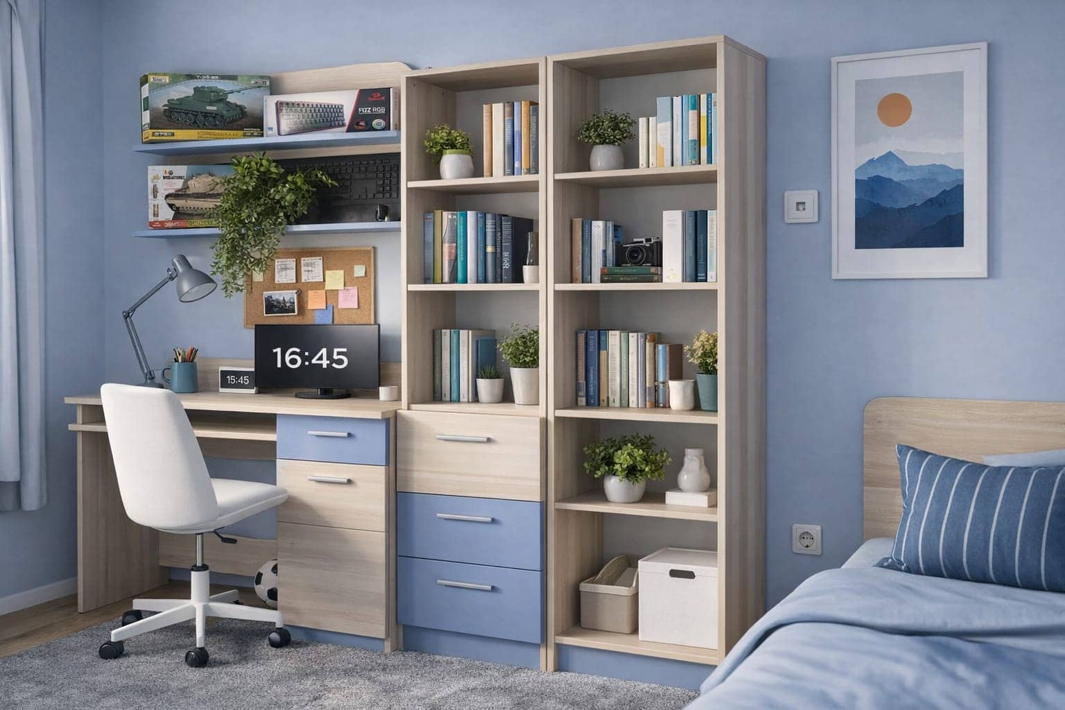 Sprzedam meble do pokoju młodzieżowego,w stanie bardzo dobrym mało używane.Odbiór 20km od Jeleniej Góry w okolicy Świerzawy.Dla zdecydowanej mozliwy transport w cenie 100pln.Cena za calosc 600pln.Dwa regaly biurko i polka