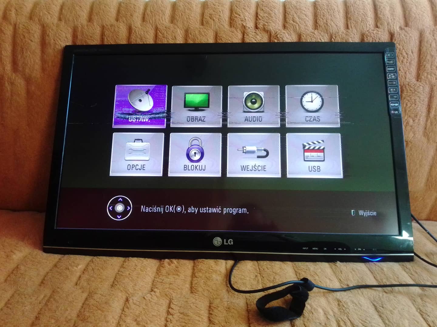 Sprzedam monitor/telewizor led 3D Lg DM2780D-PZ 27 ". Rozdzielczość full hd (1920 x 1080) z przeznaczeniem do naprawy lub na części. Włącza się. Uszkodzona matryca - nie wyświetla prawidłowo kolorów, występuje śnieżenie, po podłączeniu pamięci usb (pendrive) pojawiło się białe tło. Dźwięk jak i pozostałe funkcje działają poprawnie. W komplecie zasilacz. Brak pilota i podstawy i innych akcesoriów. Telewizorem/monitorem można sterować dotykowymi przyciskami znajdującymi się pod ekranem. Nosi ślady użytkowania w postaci zarysowań, rys na matrycy i obudowie itp. Złącza: 2 x hdmi, 1 x scart, 1 x usb 2.0, 1 x vga, 1 x rs232, 1 x antenowe, 1 x rca, 1 x komponentowe, 1 x kompozytowe. Wejście słuchawkowe, optyczne wyjście dźwięku, wejście dla dźwięku z komputera. 40 zł.