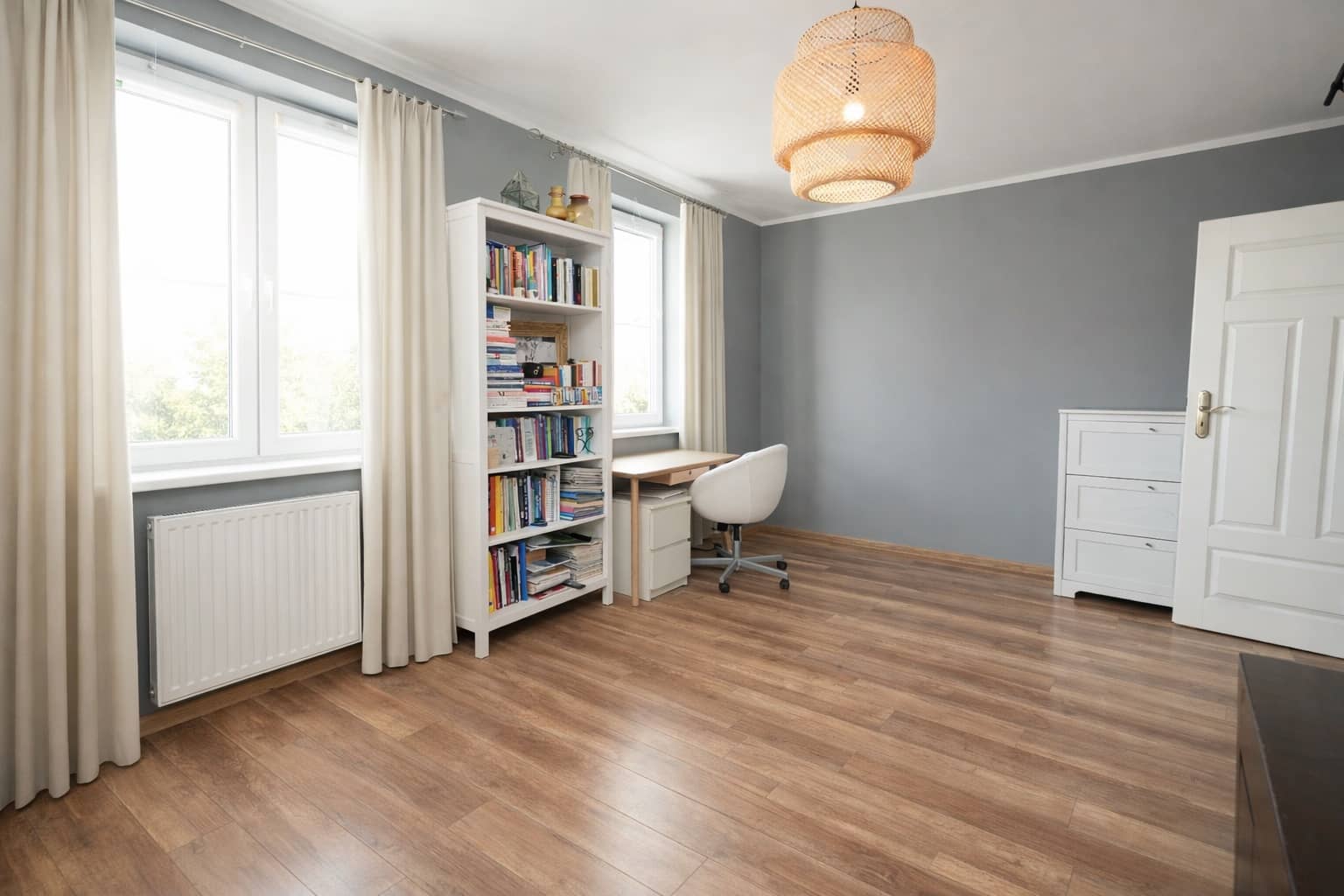duża sypialnia nr II z ekspozycją okien na tereny zielone (wcześniej funkcjonowała jako dwie odrębne sypialnie, jest opcja powrotu do stanu pierwotnego).