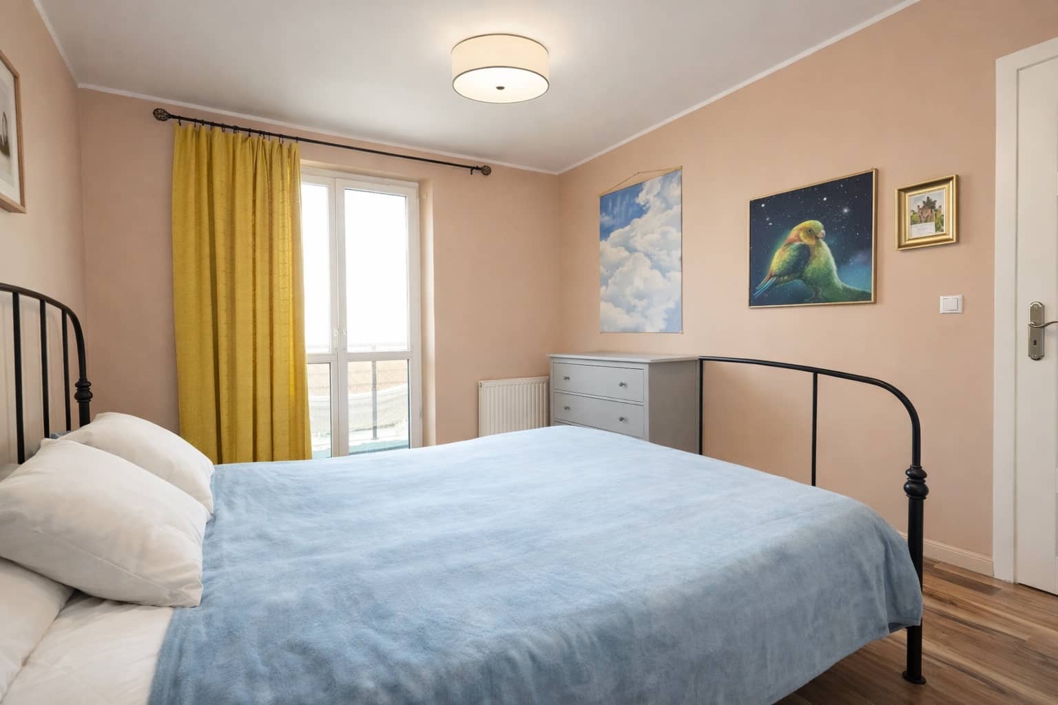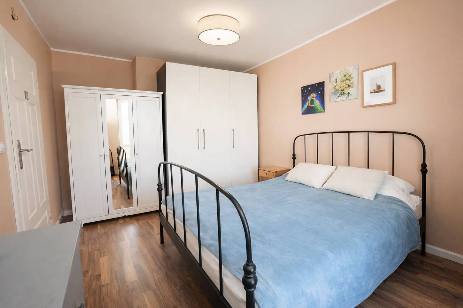 sypialnia nr I z pojemną szafą oraz z wyjściem na balkon,