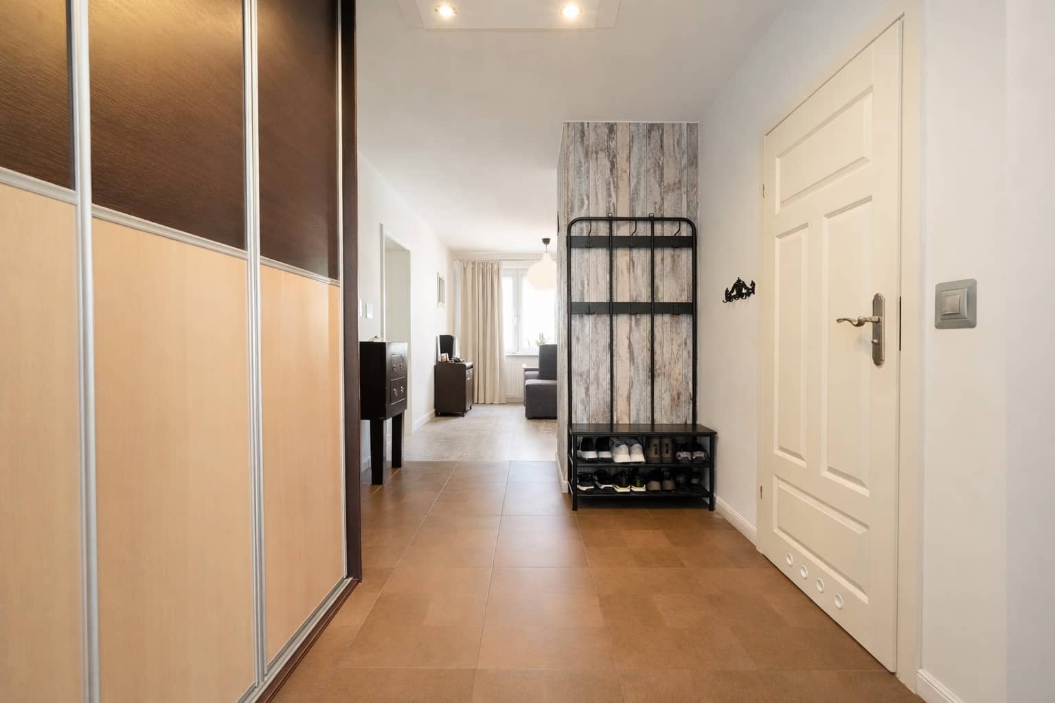 przedpokój z bardzo pojemną szafą pod wymiar,