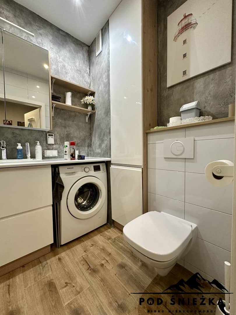 Na podłogach wysokiej klasy wodoodporne panele oraz kafle