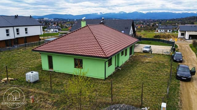 Jeżów Sudecki – nowoczesny dom parterowy w stanie surowym z widokiem na Karkonosze.