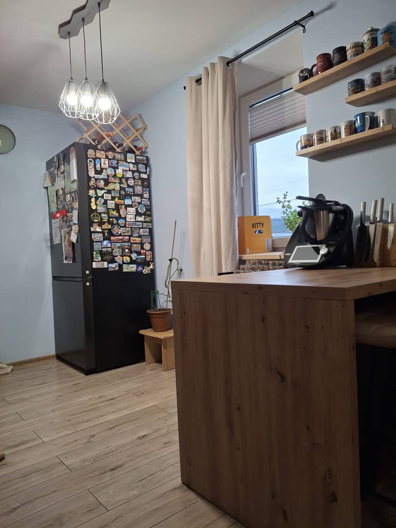 • Niskie koszty utrzymania – czynsz 253 zł, ogrzewanie kominkiem na pellet (ok. 800 zł/sezon), woda ze studni, szambo we wspólnocie