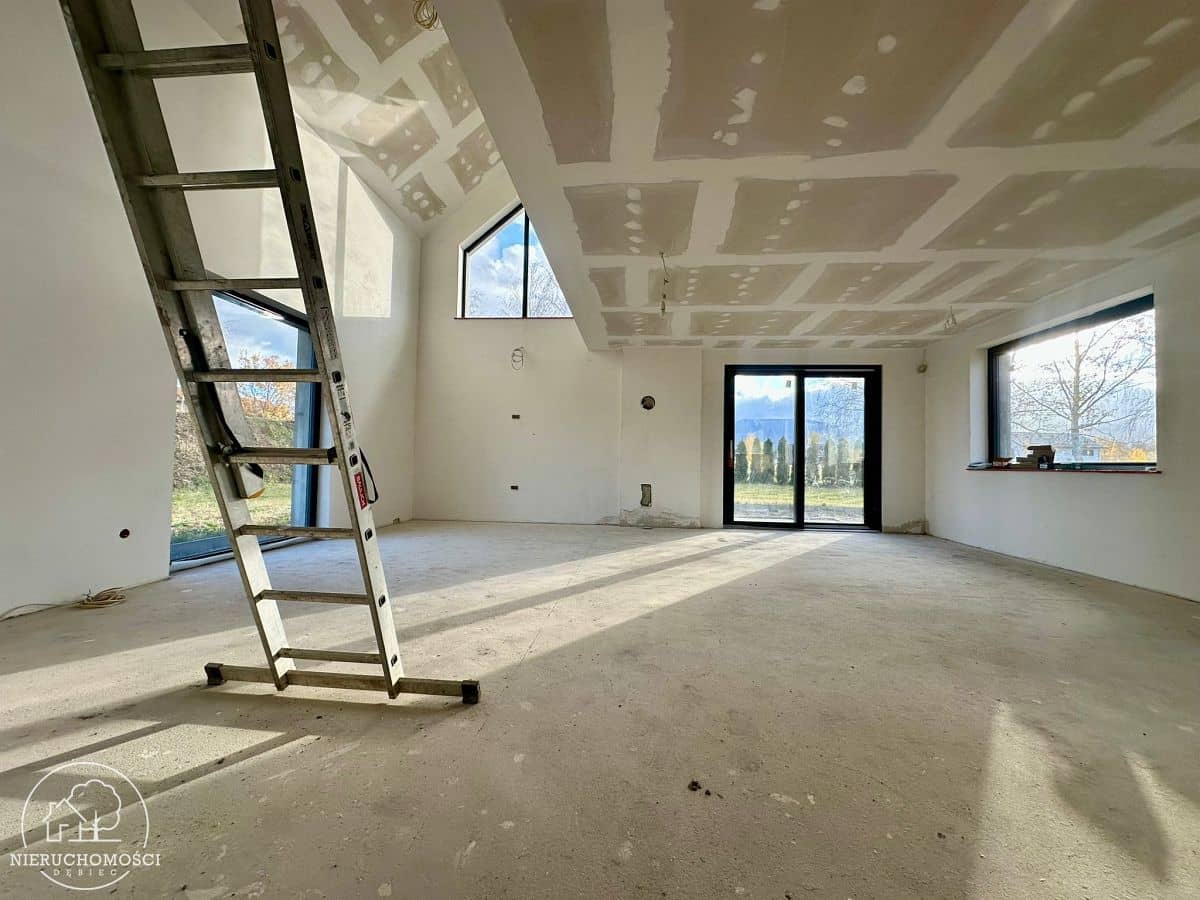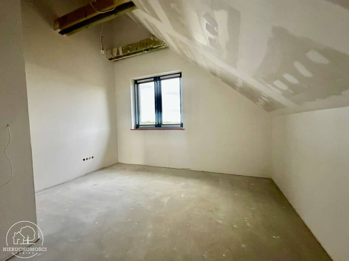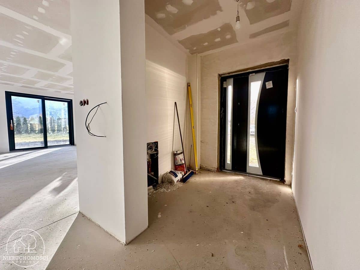 Dom nie ma jeszcze odbioru, co daje możliwość dopasowania wykończenia oraz źródła ogrzewania do własnych preferencji (np. pompa ciepła, gaz, pellet).