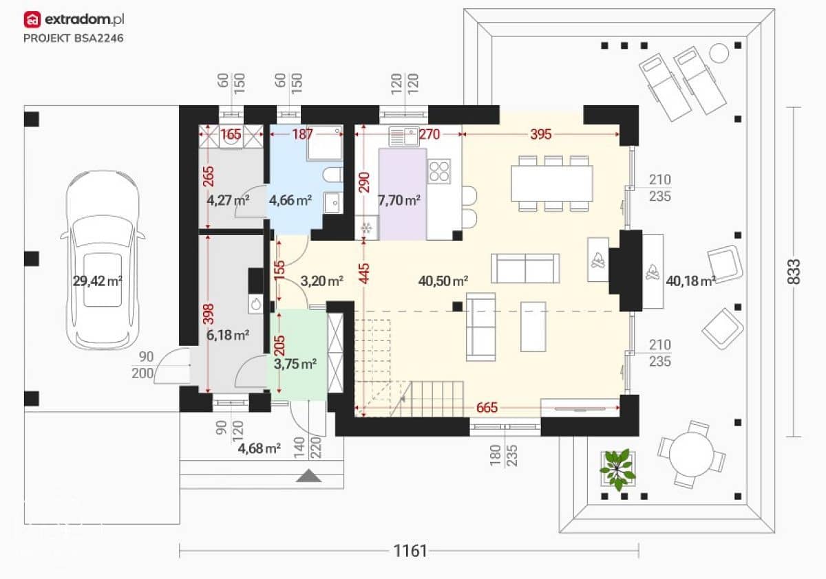 - wyjście na taras z możliwością rozbudowy o ogród zimowy,